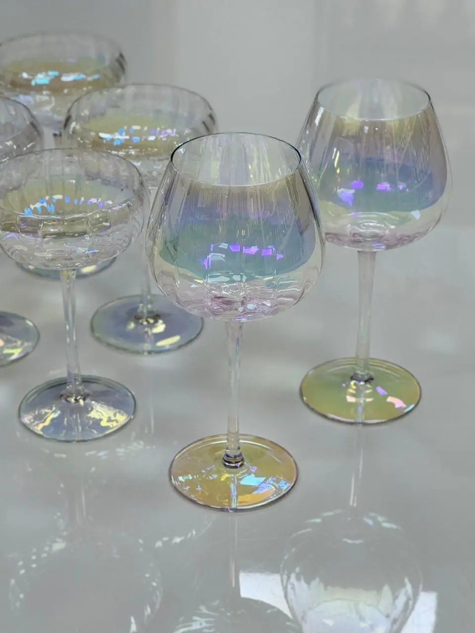 Эта коллекция создана для тех, кто чувствует детали и умеет ценить атмосферу. Бокалы Rainbow Facets удивляют игрой света на поверхности: их перламутровое покрытие создаёт радужные блики, которые переливаются при каждом движении. Это не просто стекло — это отражение вашего стиля, вашего вкуса и вашего стремления окружать себя красивыми вещами.