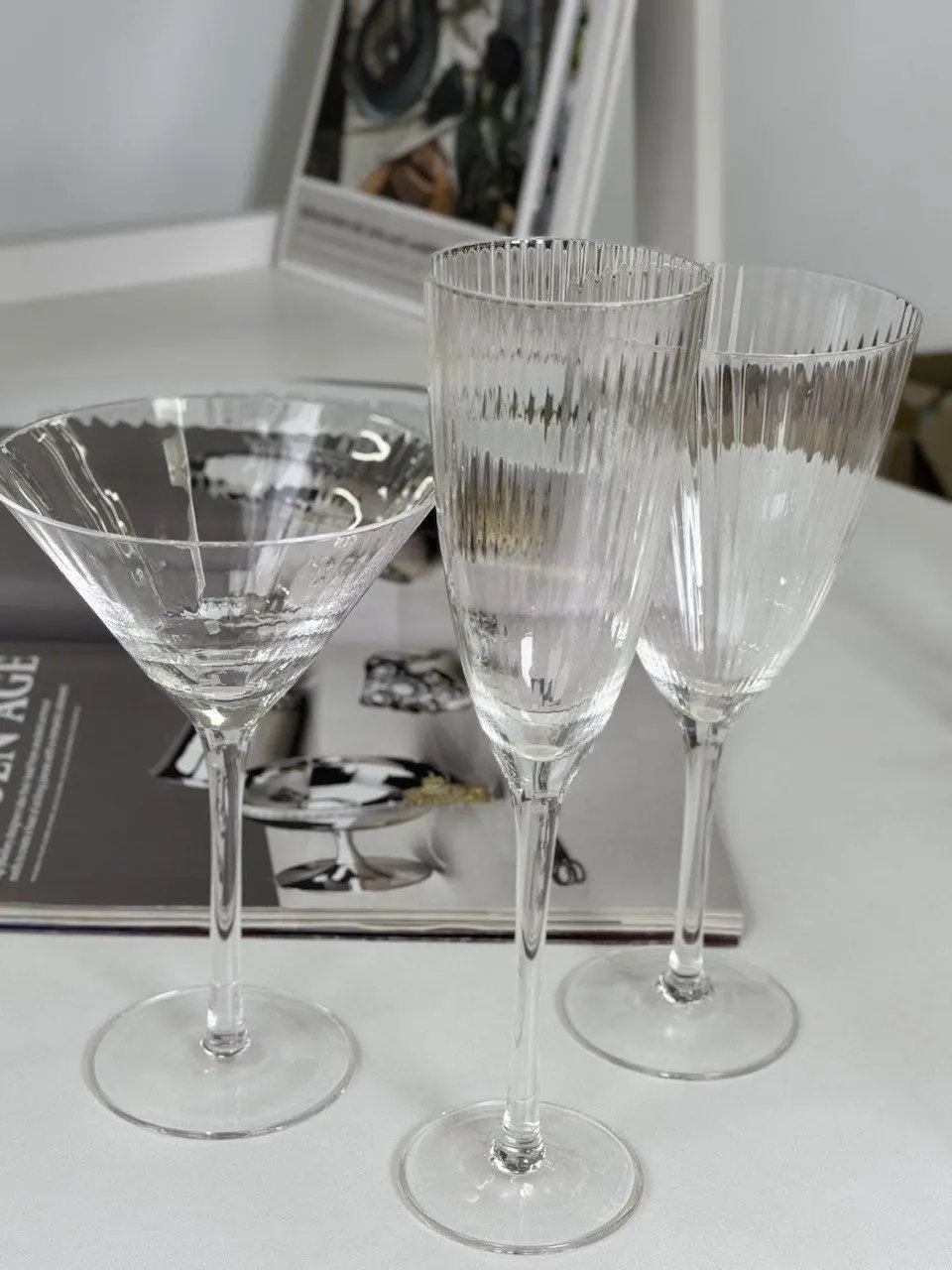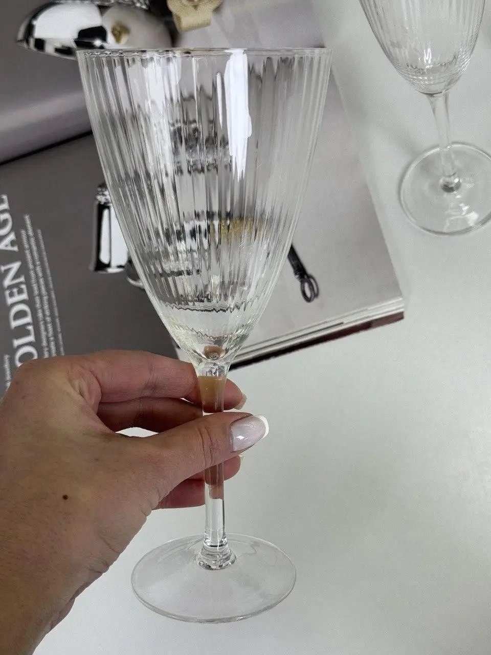 Коллекция бокалов "Слайси" — это элегантность в каждой детали. Их изысканный дизайн с вертикальной фактурной гравировкой добавляет глубины и света даже обычной воде, не говоря уже о вине или шампанском. Стекло тонкое, но прочное, идеально сбалансированное, с приятной на ощупь ножкой и утончённой формой чаши, которая раскрывает вкус напитка с первого глотка.