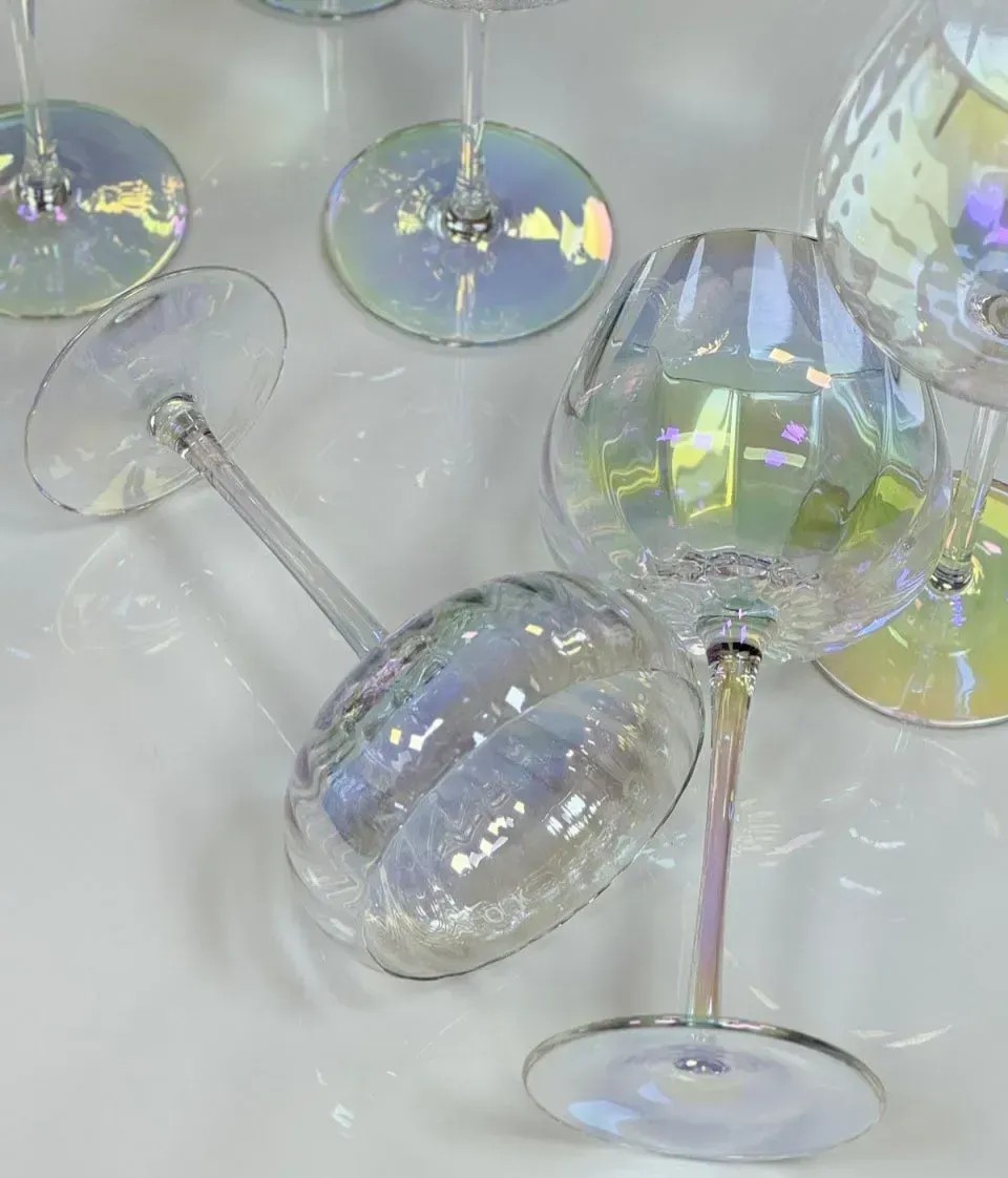 Эта коллекция создана для тех, кто чувствует детали и умеет ценить атмосферу. Бокалы Rainbow Facets удивляют игрой света на поверхности: их перламутровое покрытие создаёт радужные блики, которые переливаются при каждом движении. Это не просто стекло — это отражение вашего стиля, вашего вкуса и вашего стремления окружать себя красивыми вещами.