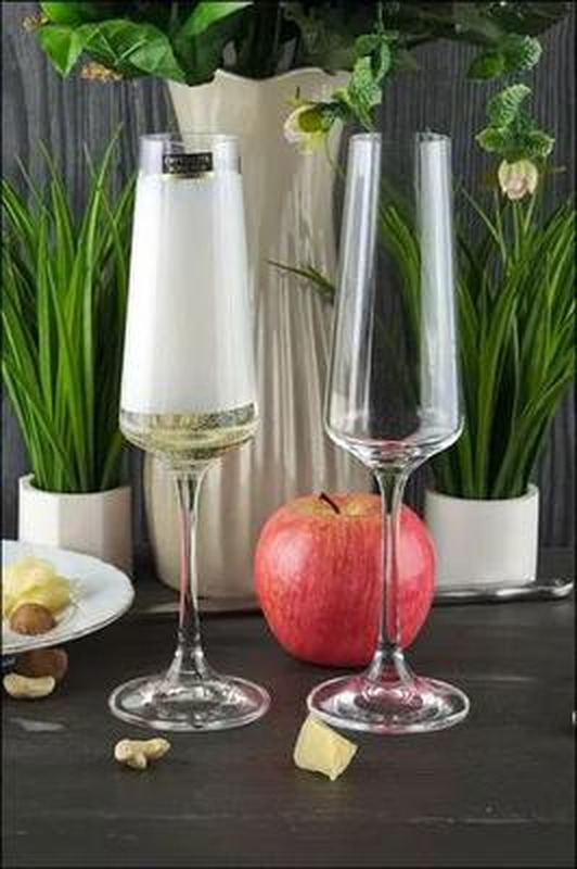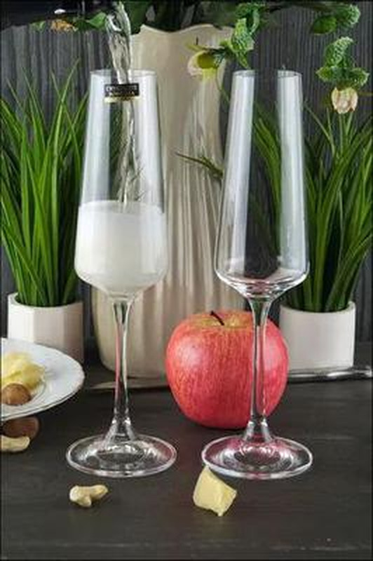 Келихи виготовлені зі скла високої якості, стійкого до подряпин і тьмяності. Мінімалістичний стиль ідеально пасує до будь-якого сервірування — як класичного, так і сучасного. Це практичний вибір для святкових подій, весіль, корпоративів, а також для домашнього використання.