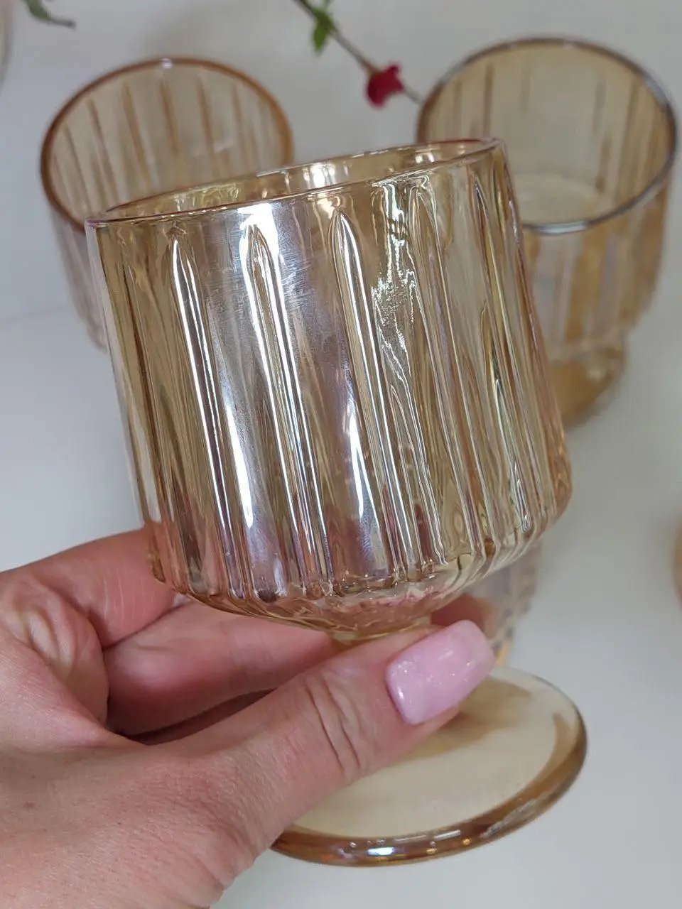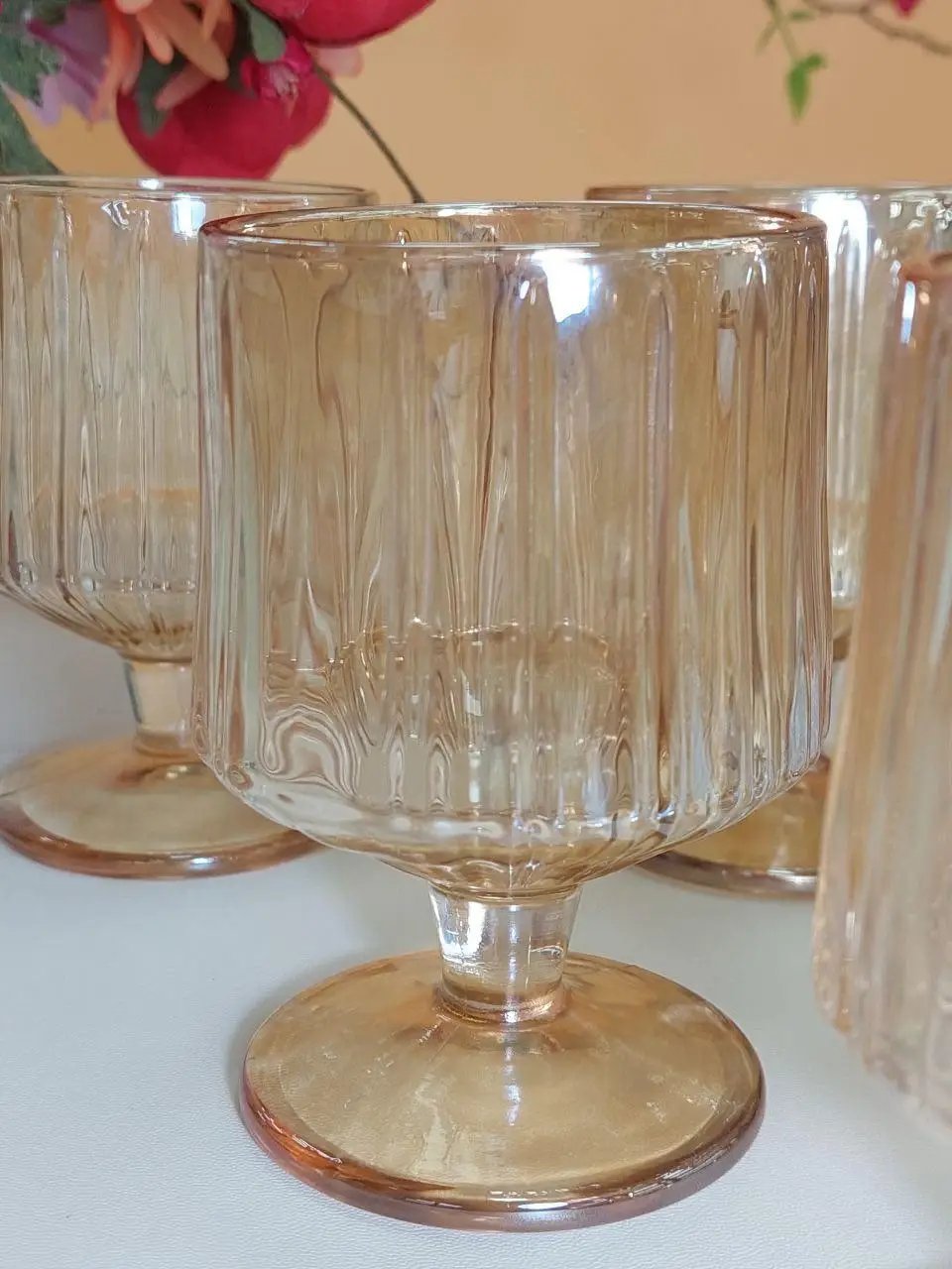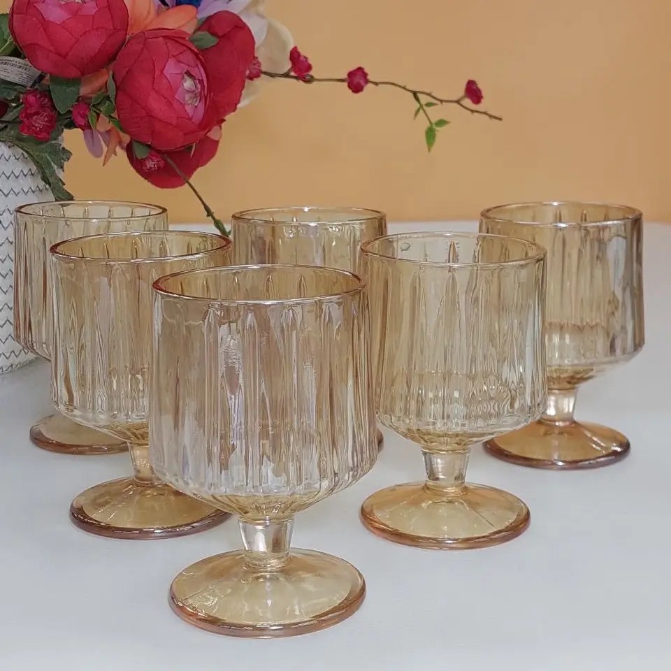 Особого внимания заслуживают бокалы для вина объёмом 220 мл. Идеально сбалансированные по форме и объёму, они раскрывают вкус напитка, позволяя наслаждаться каждым его оттенком. Лёгкость бокала, прозрачность стекла и тёплый янтарный цвет делают подачу вина не просто привычной, а действительно изысканной. Такие бокалы прекрасно подойдут как для романтического ужина, так и для праздничной сервировки.