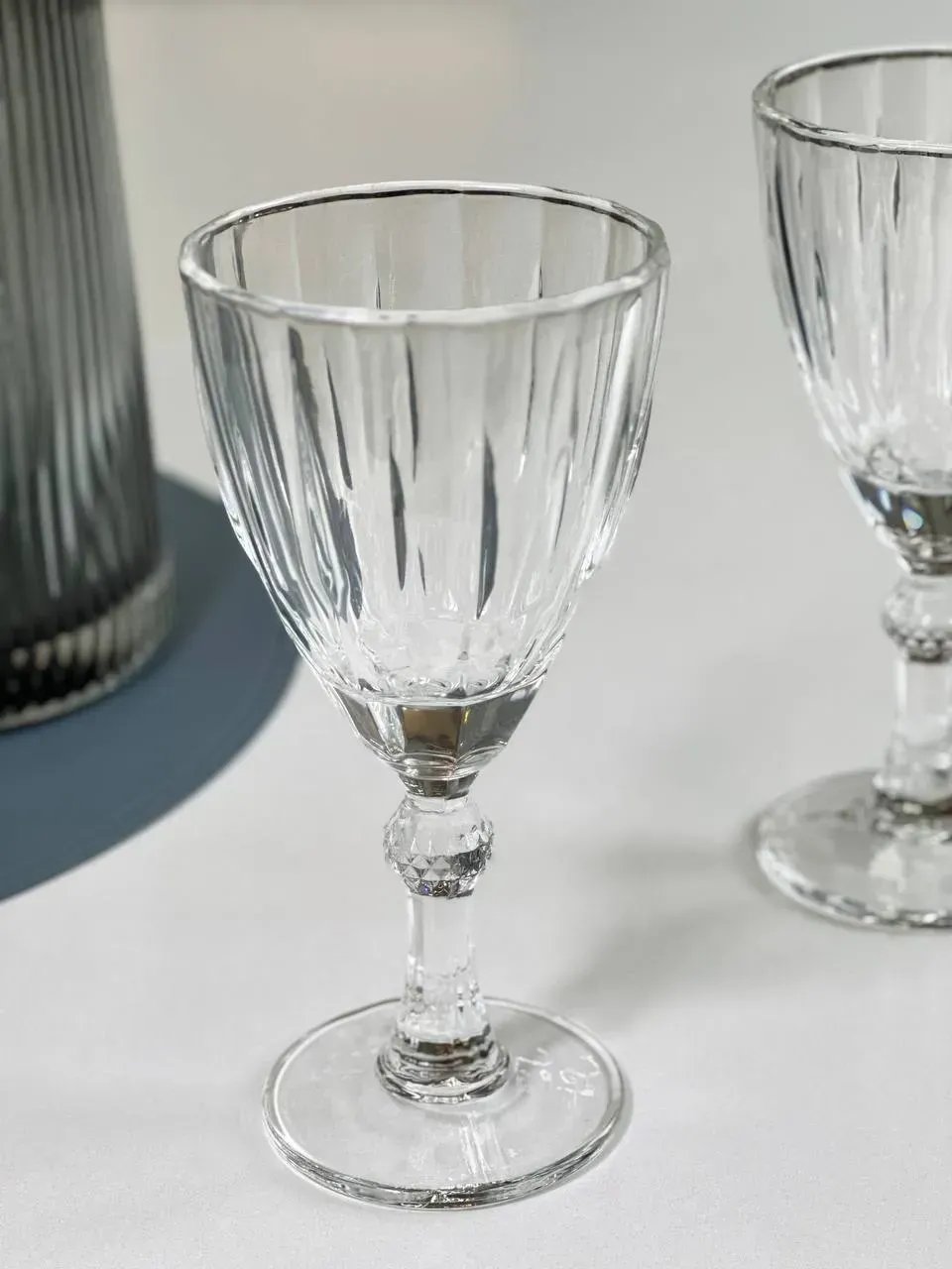 Прозрачное стекло красиво преломляет свет, а ножка с декоративным элементом придаёт бокалу особый характер — элегантный, но уверенный. Такой набор украсит ваш стол и добавит торжественности даже повседневному ужину.