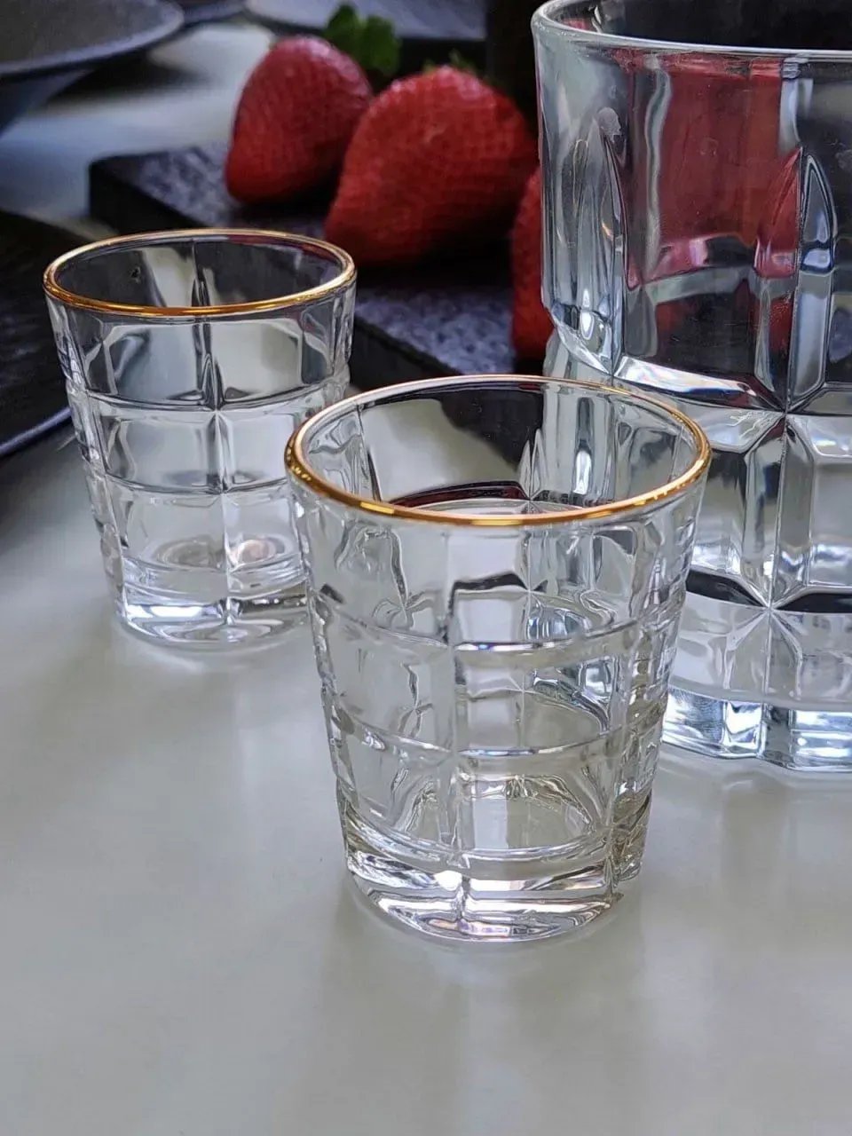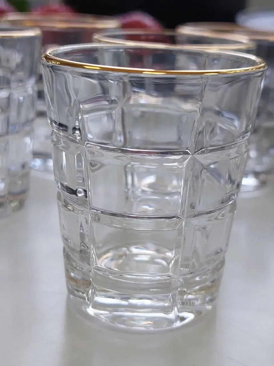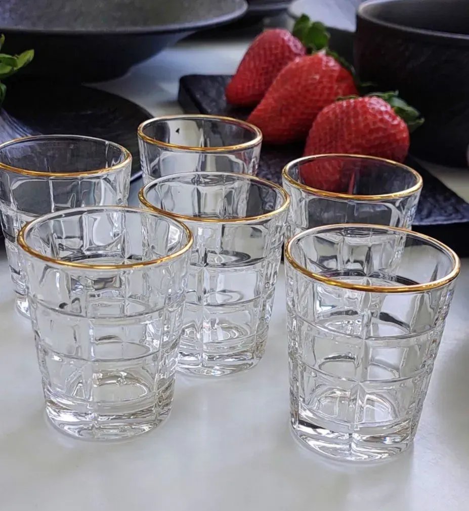 Набор рюмок « Golden Edge Elegance» 55 мл (6 штук) — это идеальное сочетание прочности, стиля и утончённости. Массивное стекло, из которого выполнены рюмки, создаёт ощущение надёжности — вы буквально чувствуете, что держите в руках настоящий фундамент любого застолья. Чистые, прозрачные стенки подчёркивают цвет напитка, а гранёная форма не только эстетически привлекательна, но и удобно ложится в ладонь.