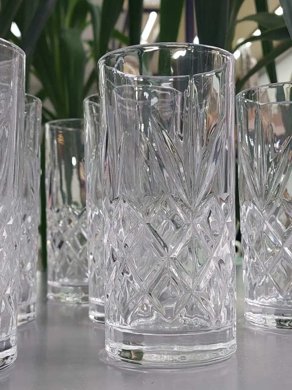 Превратите каждое чаепитие или обед в визуальное удовольствие с набором изысканных стаканов «Ананас». Эти стильные стеклянные изделия сочетают в себе практичность и элегантный дизайн. Рельефный узор в виде пересекающихся граней напоминает структуру ананаса и делает каждый стакан настоящим акцентом сервировки.