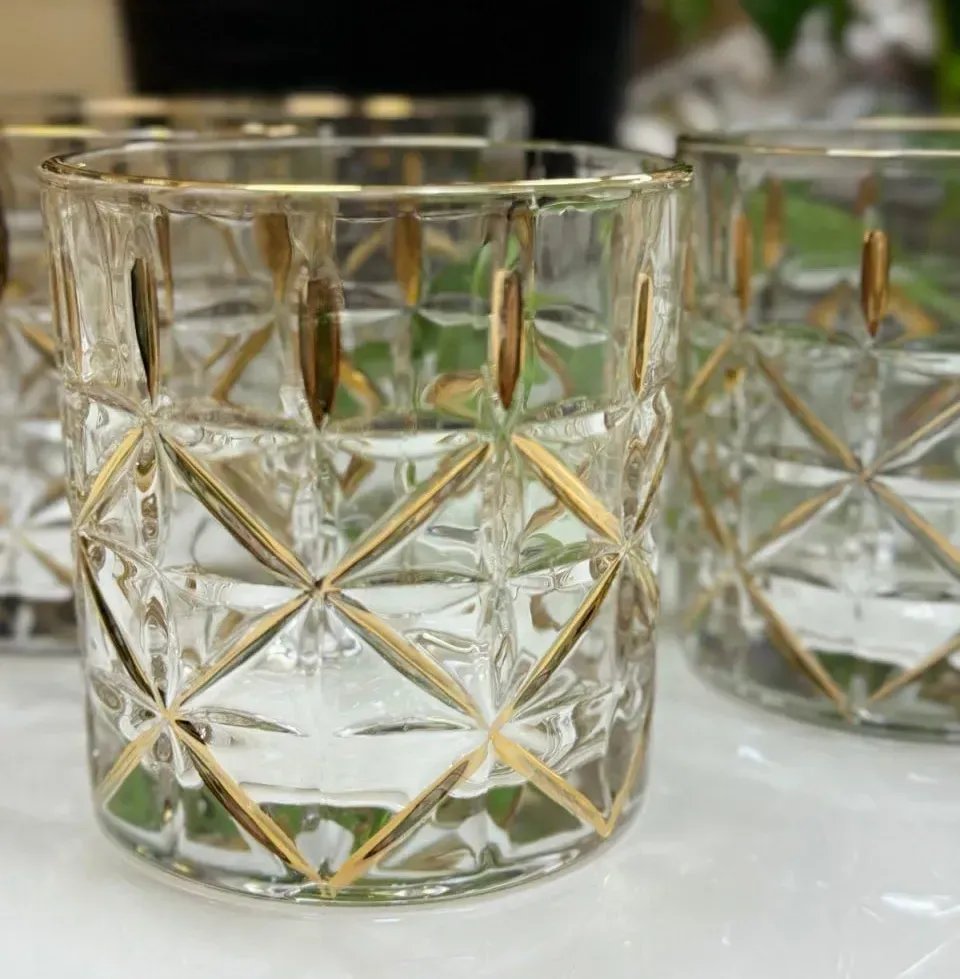 Колекція Golden Edge Elegance — це втілення сили форми та вишуканості деталей. Кожен набір із шести склянок — це більше, ніж просто посуд. Це стильний акцент, що підкреслює смак господаря дому. Щільне скло, важке дно, приємна прохолода в руці — усе створено для комфортного й приємного використання.