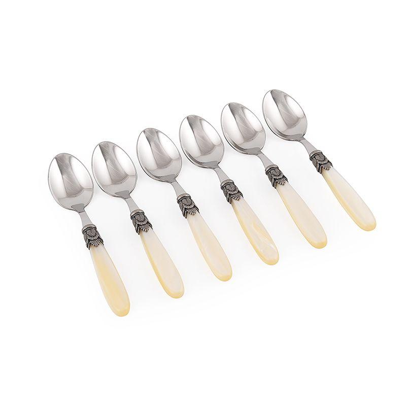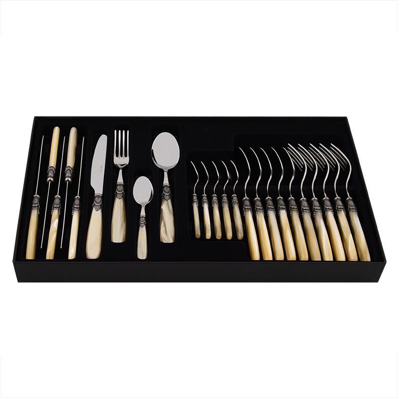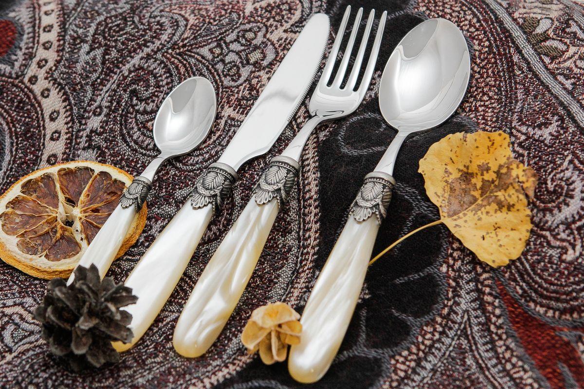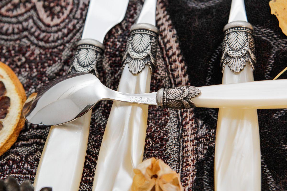 Імітація під чорне старовинне срібло підкреслює ніжність теплого бежевого відтінку, а холодні відблиски високоякісної сталі створюють у сервіруванні стильні блискучі акценти.