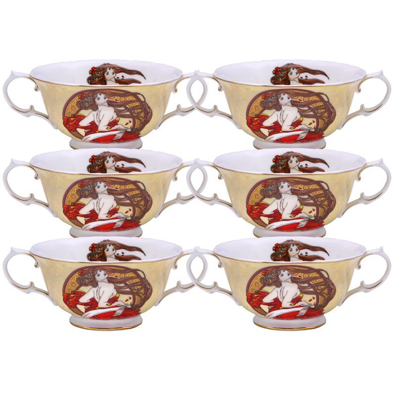 Набір складається із 6 супниць (300 мл). У декорі використано репродукцію відомої картини чеського художника Альфонса Марію Муху «Танець». Порцеляновий посуд стане окрасою будь-якого заходу: ділового обіду або святкової вечері. Надасть гулянням відчуття легкості, витонченості, затишку, почуття стилю.