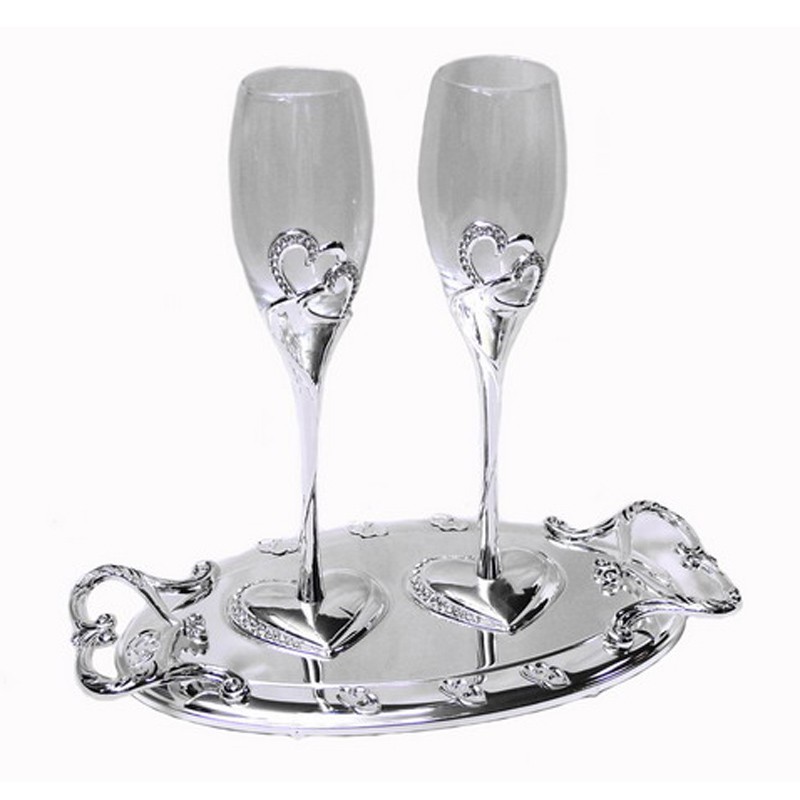 Набір весільний на підносі (2 келихи, посріблення)