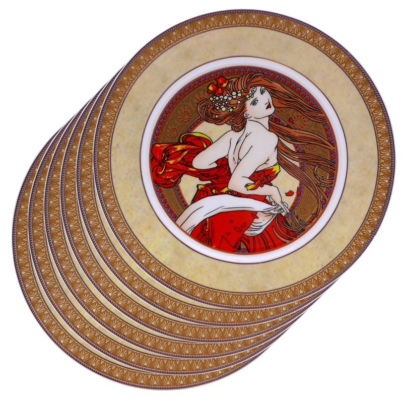 Фарфоровая посуда станет украшением любого мероприятия: делового обеда или праздничного ужина. Придаст застолью ощущение легкости, изящности, уюта, чувство стиля.В декоре использовано изображением известной картины чешского художника Альфонс Мария Муха «Танец»