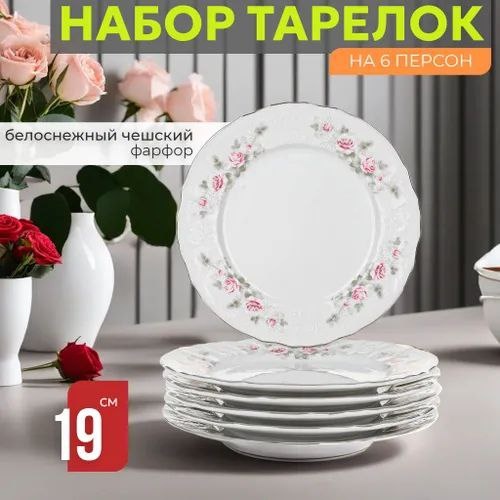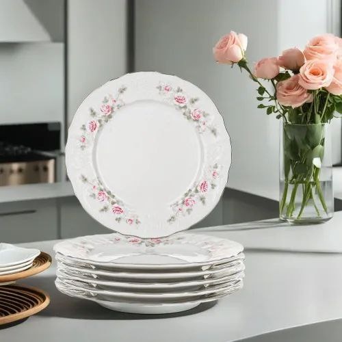 Набор тарелок фарфоровых десернтных с рисунком Bernadotte Бледная Роза с платиновой каймой 19 см/6 шт