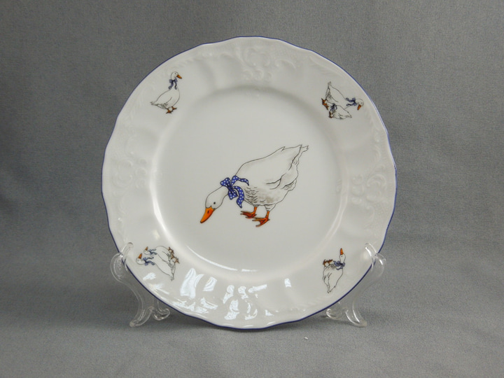 Набор тарелок фарфоровых десертных с рисунком Bernadotte Гуси с синей каймой 19 см/6 шт