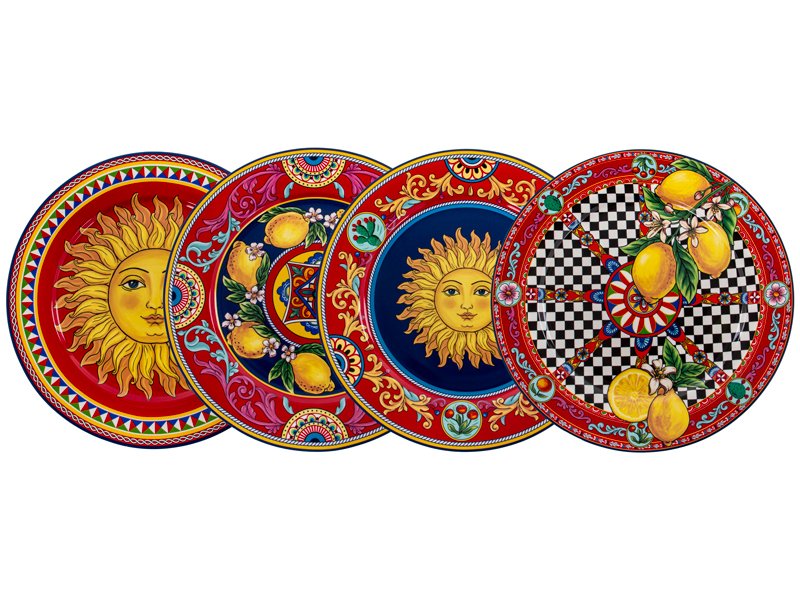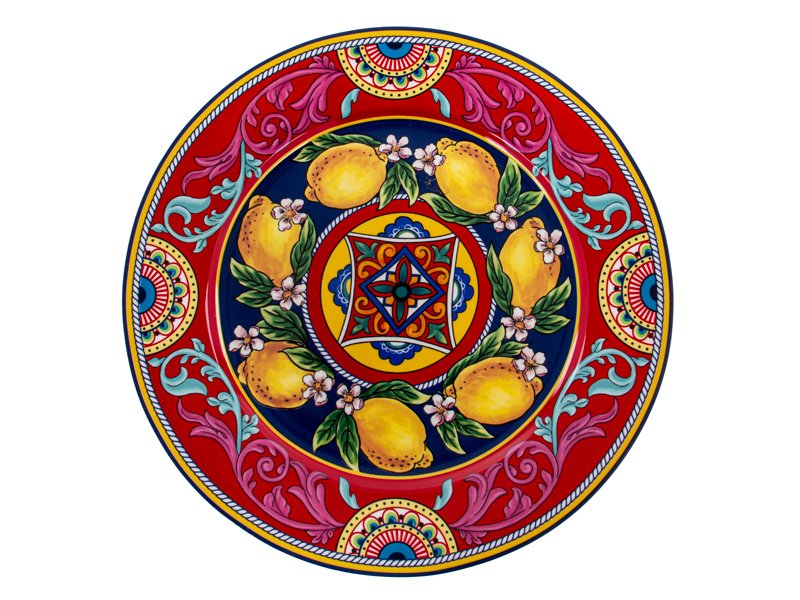 Наборы тарелок Dolche на 27 см и 19 см — это настоящая история о южной Италии, рассказанная языком фарфора. Здесь встречаются жаркое солнце, лимонные сады Амальфи и смелая энергия сицилийских орнаментов. Каждая тарелка — как картина: глубокие оттенки синего и алого, сияние золота и свежесть цитрусов создают настроение праздника. Большие тарелки на 27 см станут главным акцентом сервировки для пасты, ризотто или мяса, а изящные 19-сантиметровые идеально подойдут для антипасти, сыра или десертов, завершая композицию стола.