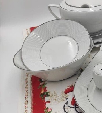 Глубокая тарелка диаметром 22 см разработана для подачи супов, бульонов и блюд с соусами. Её форма удобна для ежедневного использования, а гладкая глазурь облегчает уход. Платиновый кант выделяет её среди обычной посуды, делая подачу более аккуратной и структурированной.