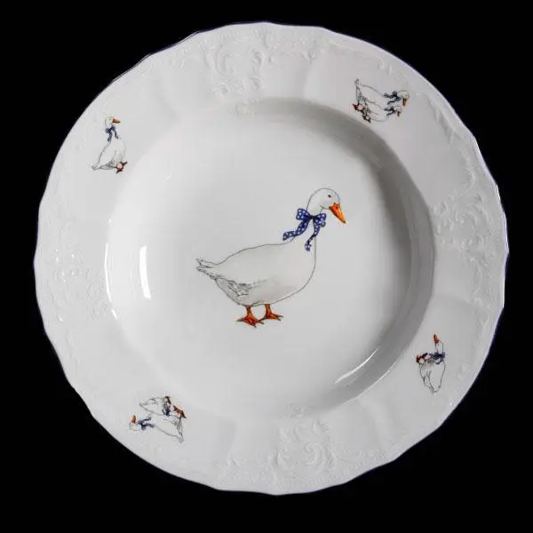 Набор глубоких тарелок Bernadotte «Гуси» — это идеальное сочетание утончённого дизайна и домашнего уюта. Изготовленные из высококачественного чешского фарфора, эти тарелки станут украшением любого стола. Милый рисунок гусей на белоснежном фоне добавляет доброй, теплой атмосферы в каждую трапезу.