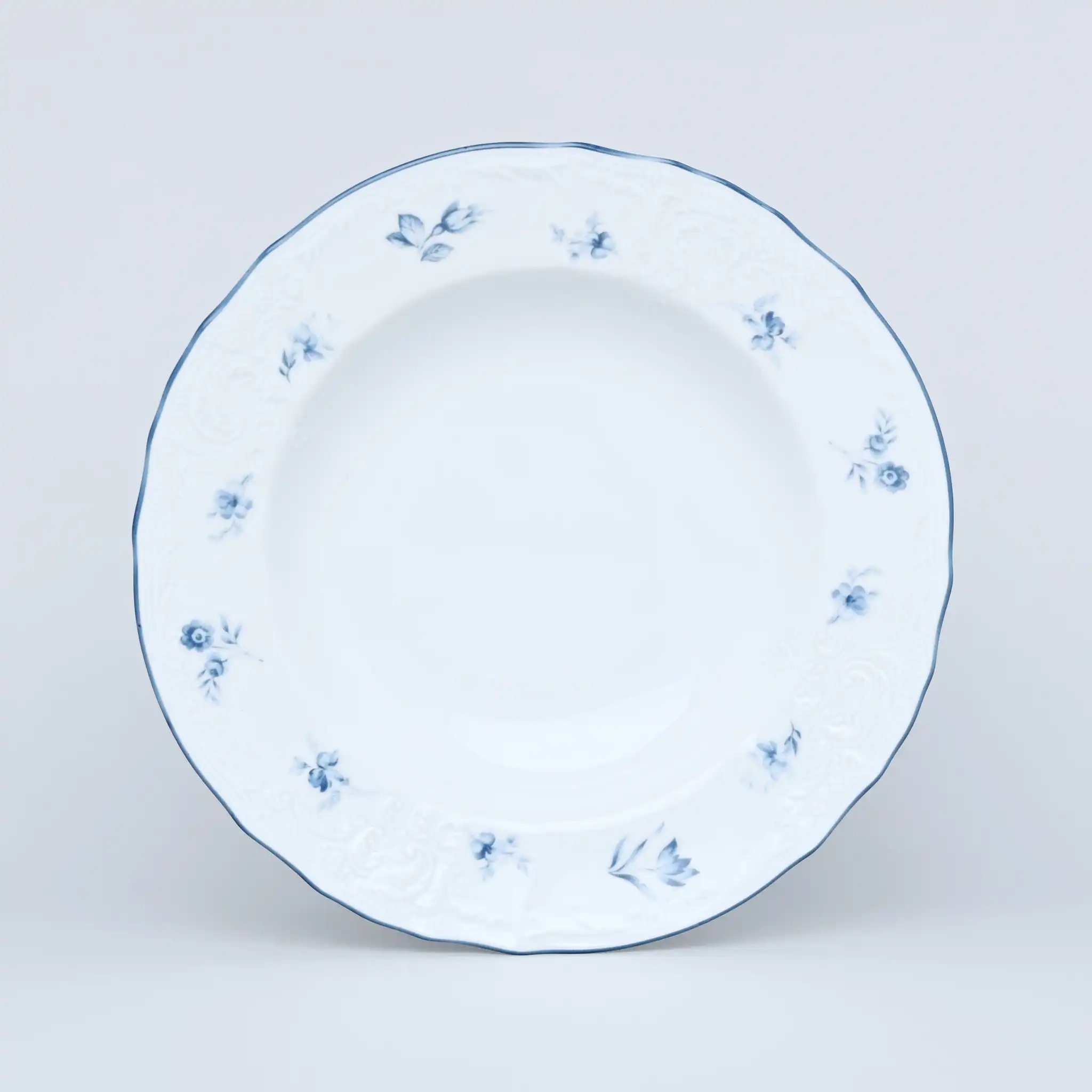 Набор тарелок фарфоровых глубоких с рисунком Thun Bernadotte Апрельское Цветение с синей каймой 23 см/6 шт