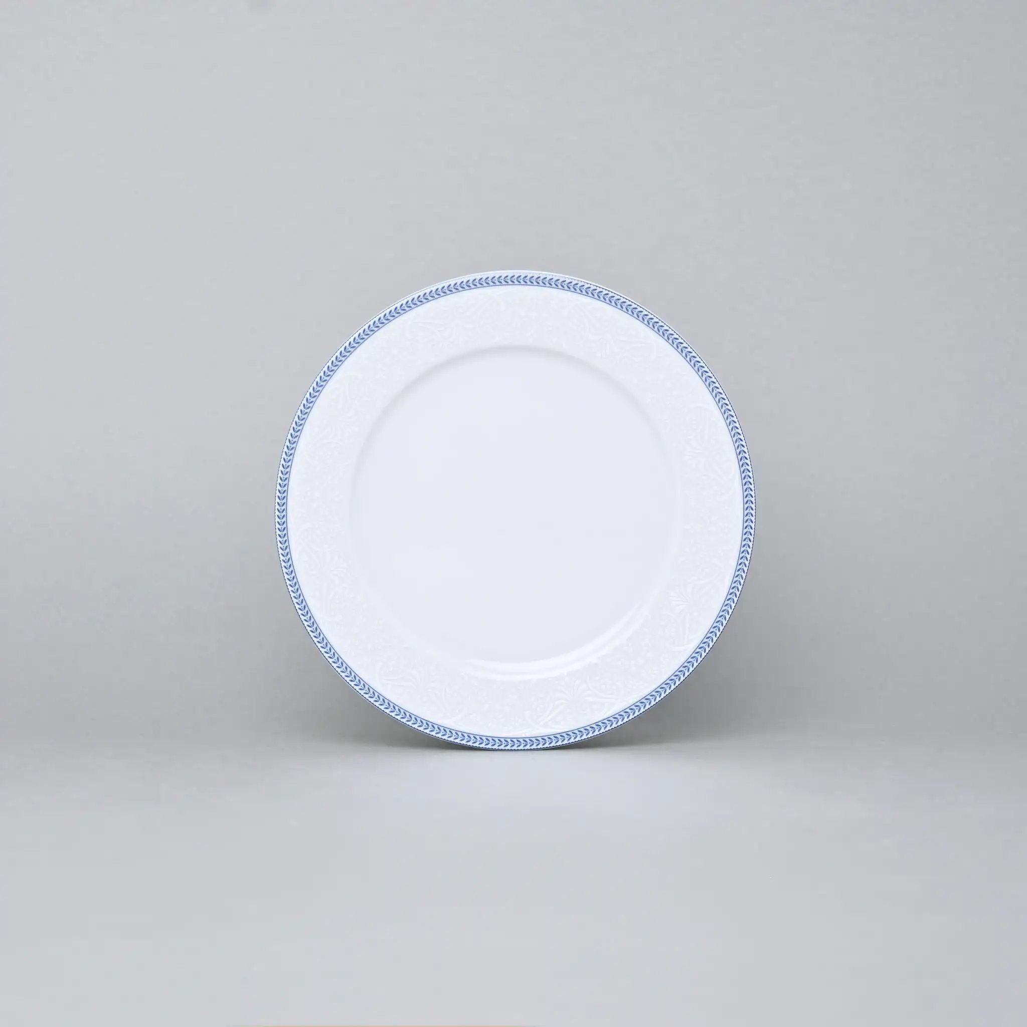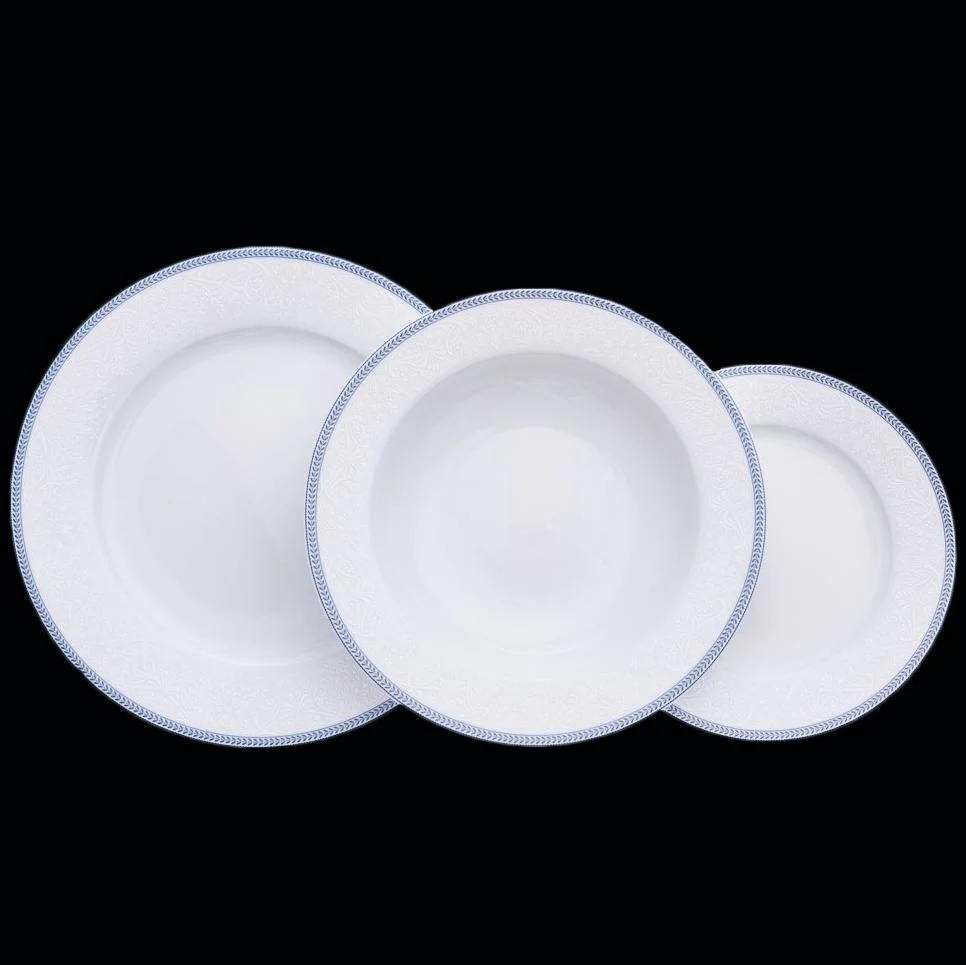 Тарелки коллекции «Голубые Пластинки» Thun Opal — это элегантный диалог классики и сдержанной изысканности. Белоснежный фарфор с рельефным декором и утончённой голубой каймой создаёт ощущение лёгкости, порядка и торжественности. Каждое изделие — как нота в мелодии идеального стола.