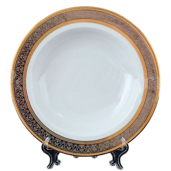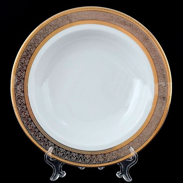 Набор тарелок фарфоровых круглых глубоких с декором Thun Opal широкий кант золото+платина 22 см
