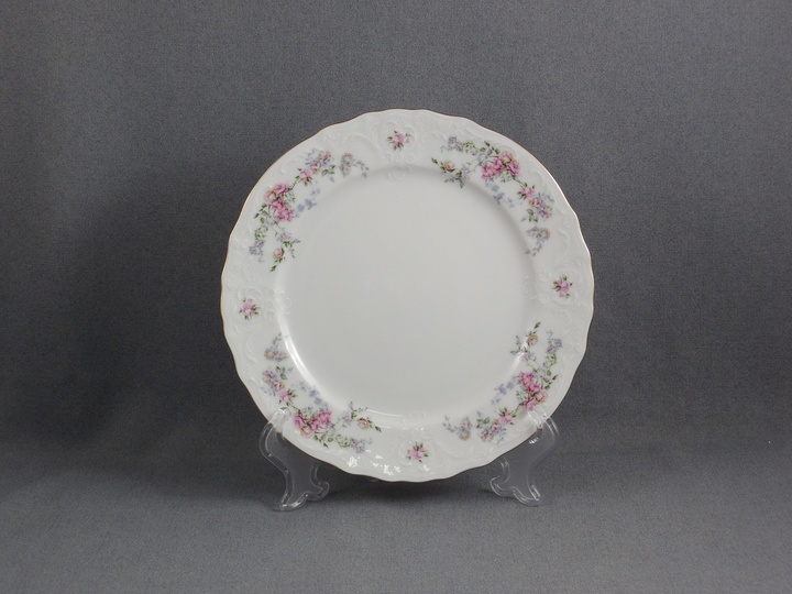 Набор тарелок фарфоровых круглых мелких цветных с золотой каймой Thun Bernadotte Дикая Роза 6 шт/21 см