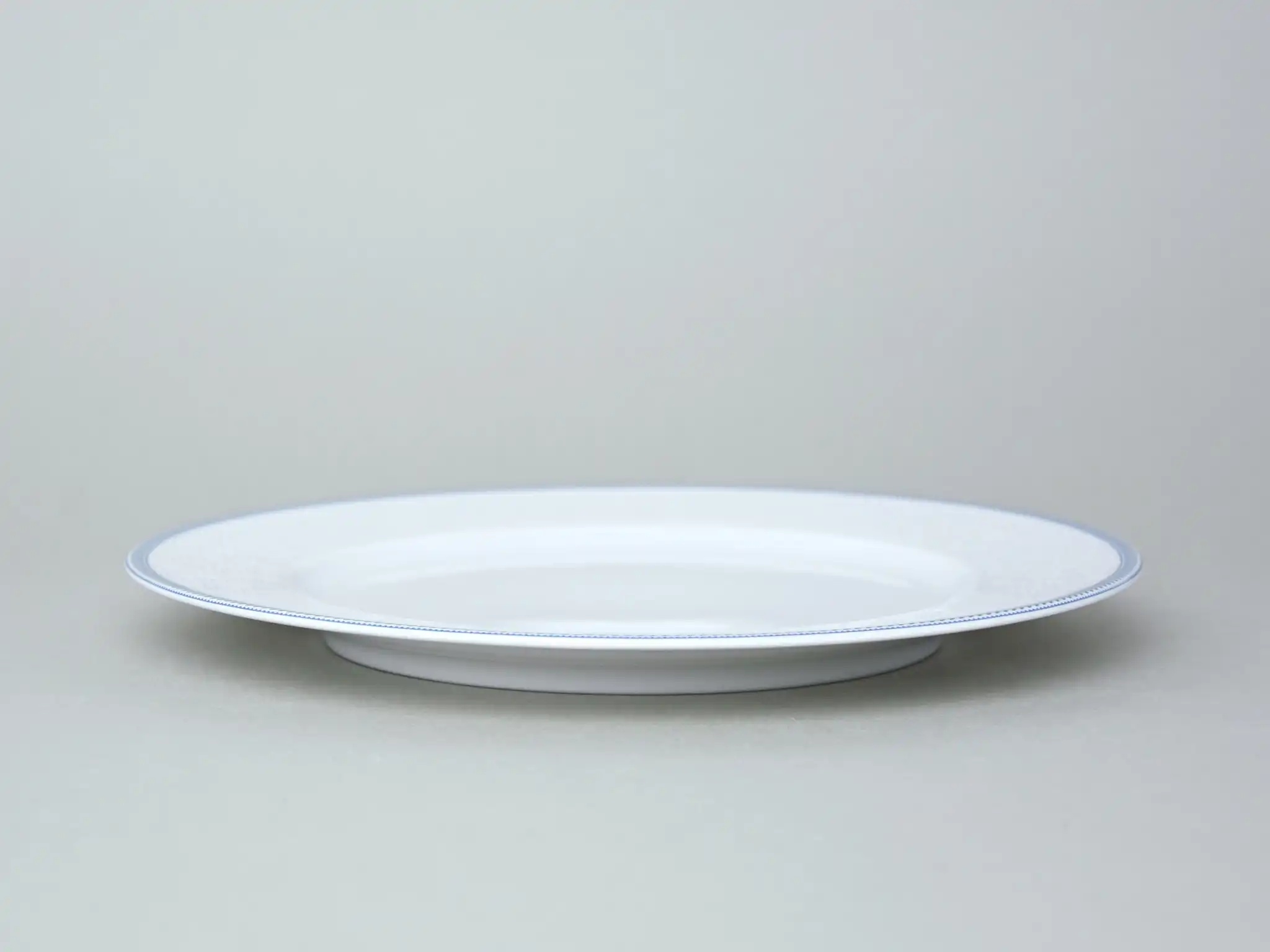Тарелки коллекции «Голубые Пластинки» Thun Opal — это элегантный диалог классики и сдержанной изысканности. Белоснежный фарфор с рельефным декором и утончённой голубой каймой создаёт ощущение лёгкости, порядка и торжественности. Каждое изделие — как нота в мелодии идеального стола.