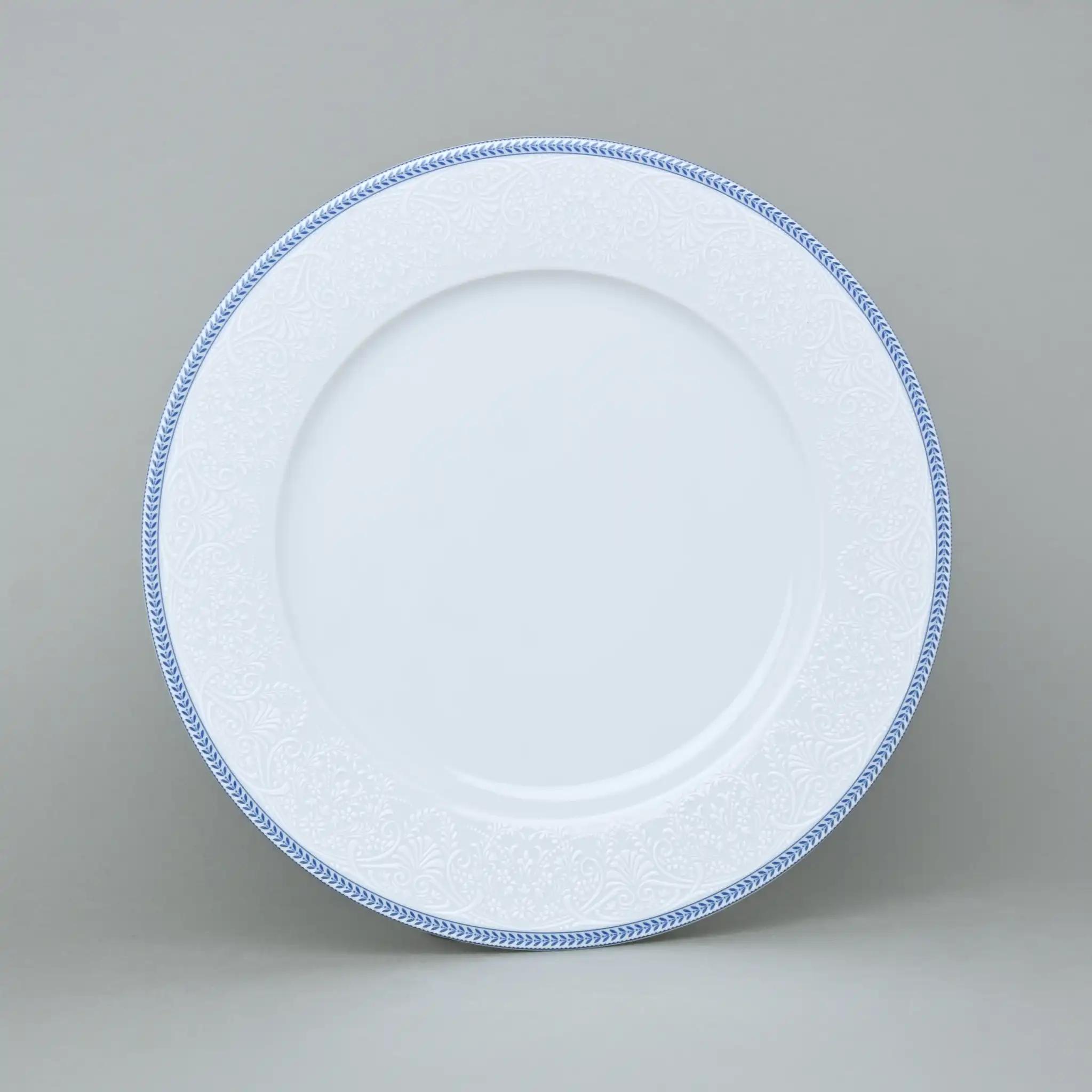 Набор тарелок фарфоровых круглых мелких с голубым окаймлением Thun Opal Голубые Пластинки 6 шт/25 см