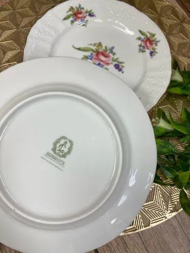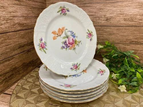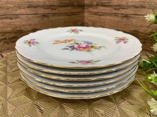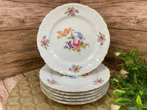 Набор тарелок фарфоровых мелких с цветным декором Thun Menuet Мейсенский Букет 21 см/6 шт