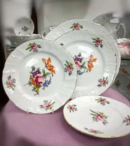 Вдохновлённый классической европейской эстетикой, набор мелких фарфоровых тарелок Thun Menuet с цветочным декором словно переносит нас в утончённую атмосферу загородных дворцов и воскресных обедов под пение птиц. На белоснежной поверхности фарфора распустились яркие бутоны — розы, лилии, фиалки, будто только что собранные в утреннем саду. Этот рисунок оживляет сервировку, придаёт ей поэтичность и уют.