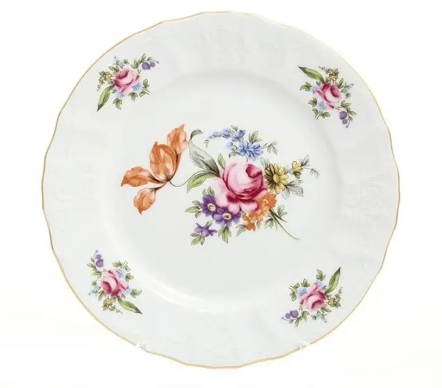 Классическая форма с мягкими волнистыми краями и утончённым рельефом делает каждую тарелку не просто предметом быта, а изысканным элементом декора. Такой сервиз уместен в любой интерьерной стилистике — от традиционной до прованса или шебби-шик. Он легко сочетается с белыми или цветочными скатертями и будет достойным дополнением к другим фарфоровым изделиям Thun.