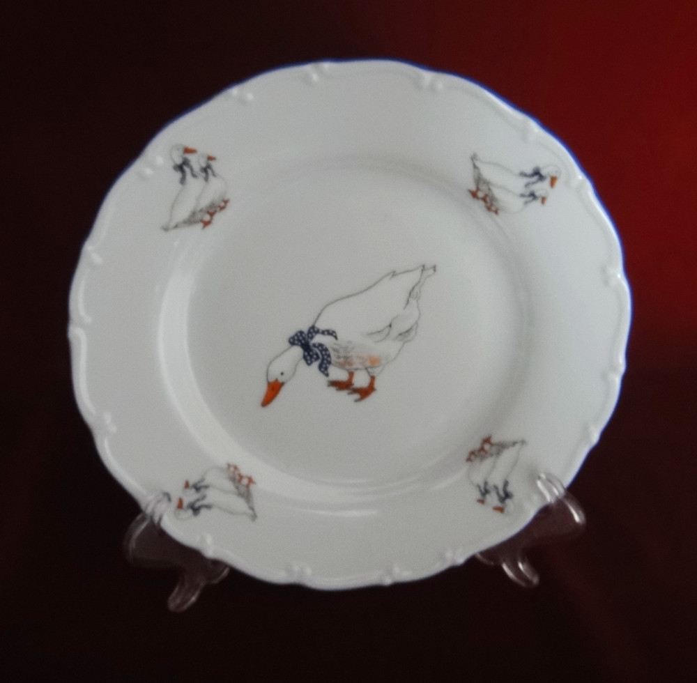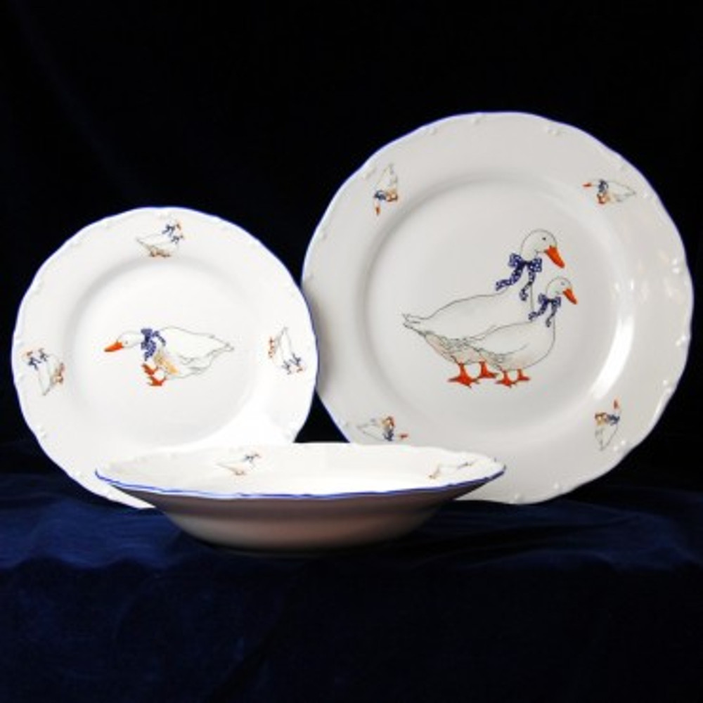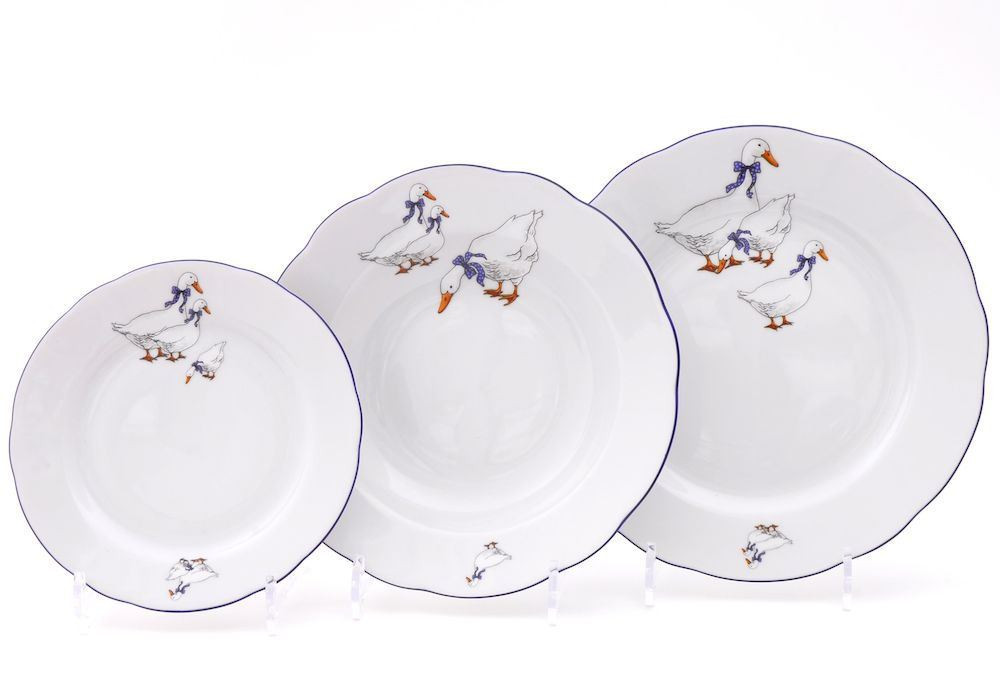 Набор тарелок фарфоровых мелких с рисунком Bernadotte Гуси с синей каймой 21 см/6 шт