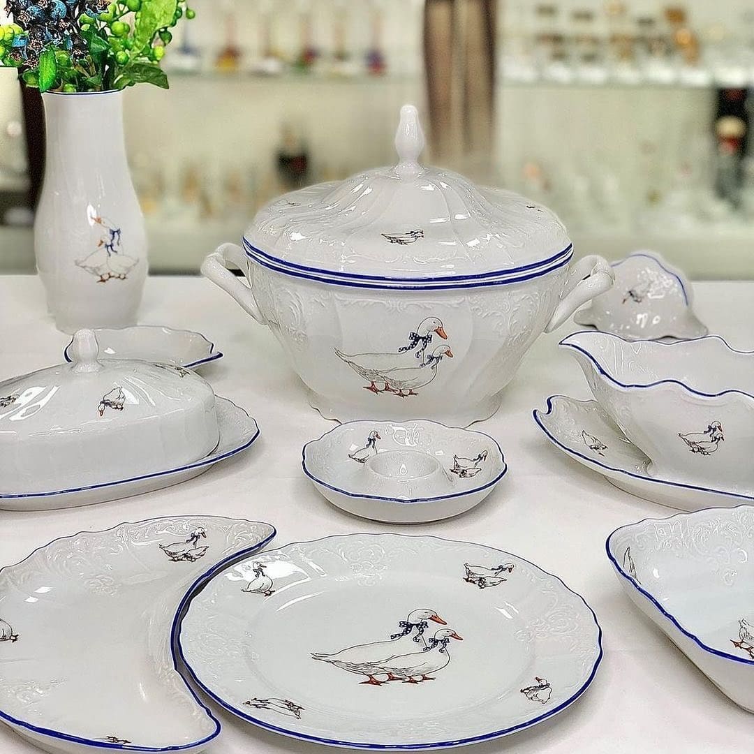 Погрузитесь в атмосферу тепла и уюта вместе с набором десертных тарелок Bernadotte «Гуси». Эти изящные фарфоровые изделия, украшенные трогательными гусями и нежной голубой каймой, будто созданы для семейных чаепитий, воскресных бранчей и уютных вечеров с домашней выпечкой. Они добавляют светлое настроение и делают каждый приём пищи особенным.