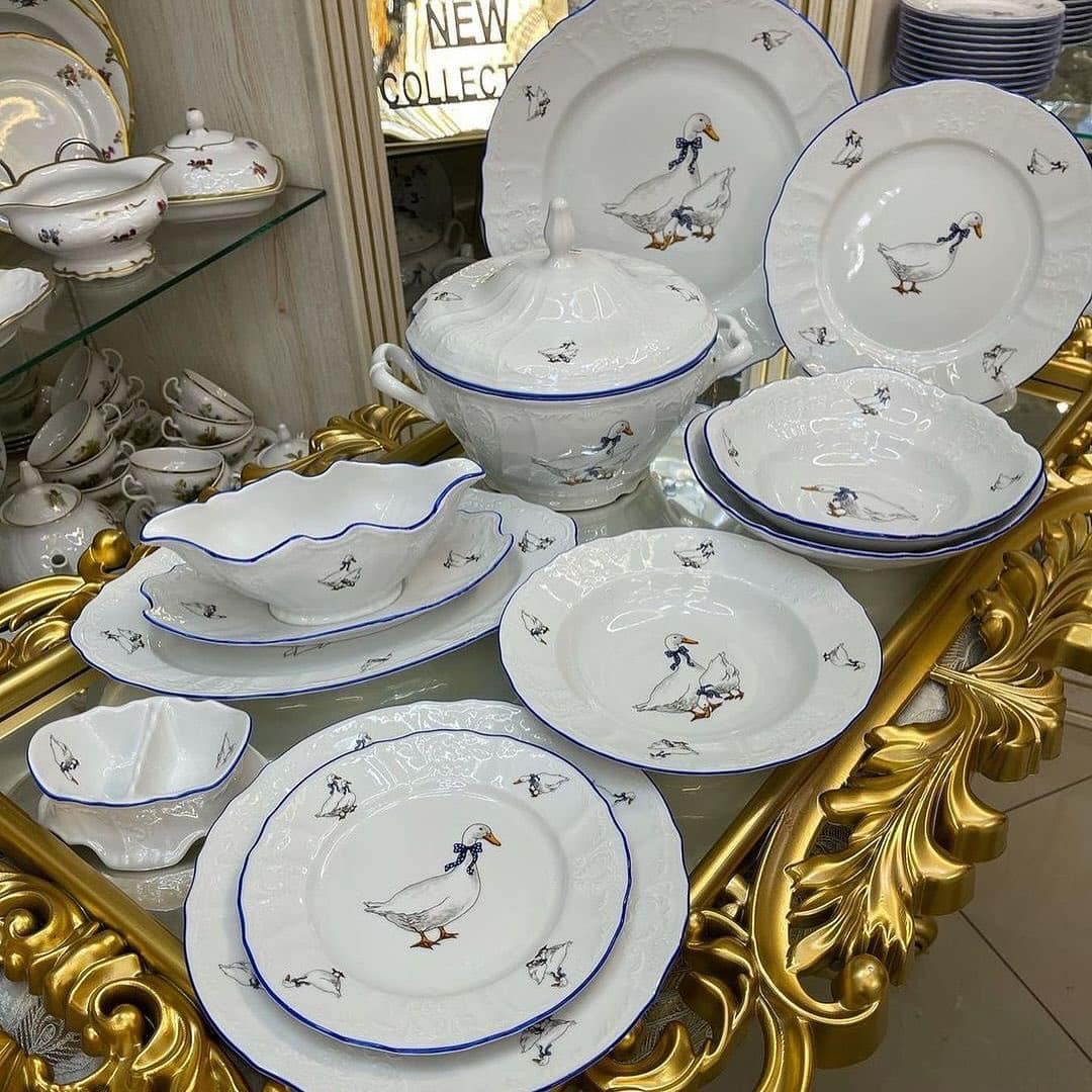 Погрузитесь в атмосферу тепла и уюта вместе с набором десертных тарелок Bernadotte «Гуси». Эти изящные фарфоровые изделия, украшенные трогательными гусями и нежной голубой каймой, будто созданы для семейных чаепитий, воскресных бранчей и уютных вечеров с домашней выпечкой. Они добавляют светлое настроение и делают каждый приём пищи особенным.