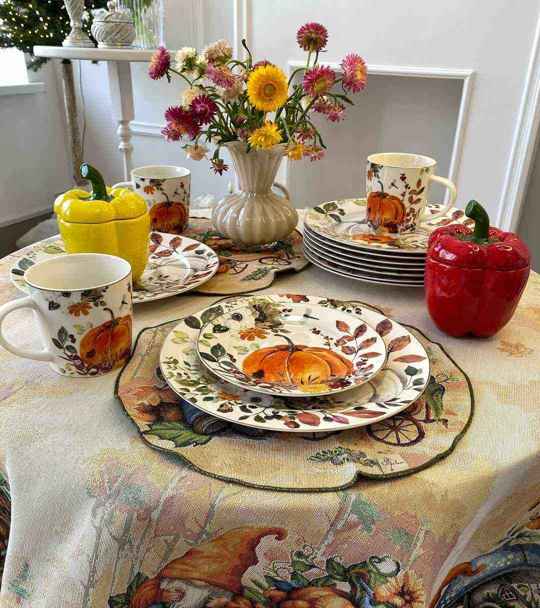 Фарфор высокого качества обеспечивает долговечность и практичность в использовании. Поверхность устойчива к повреждениям, рисунок не тускнеет со временем, а края дополнительно выделены тонкой аккуратной отделкой. Набор подчеркнёт атмосферу осенних праздников, семейных ужинов или станет стильным дополнением к сервировке стола в любое время года.
