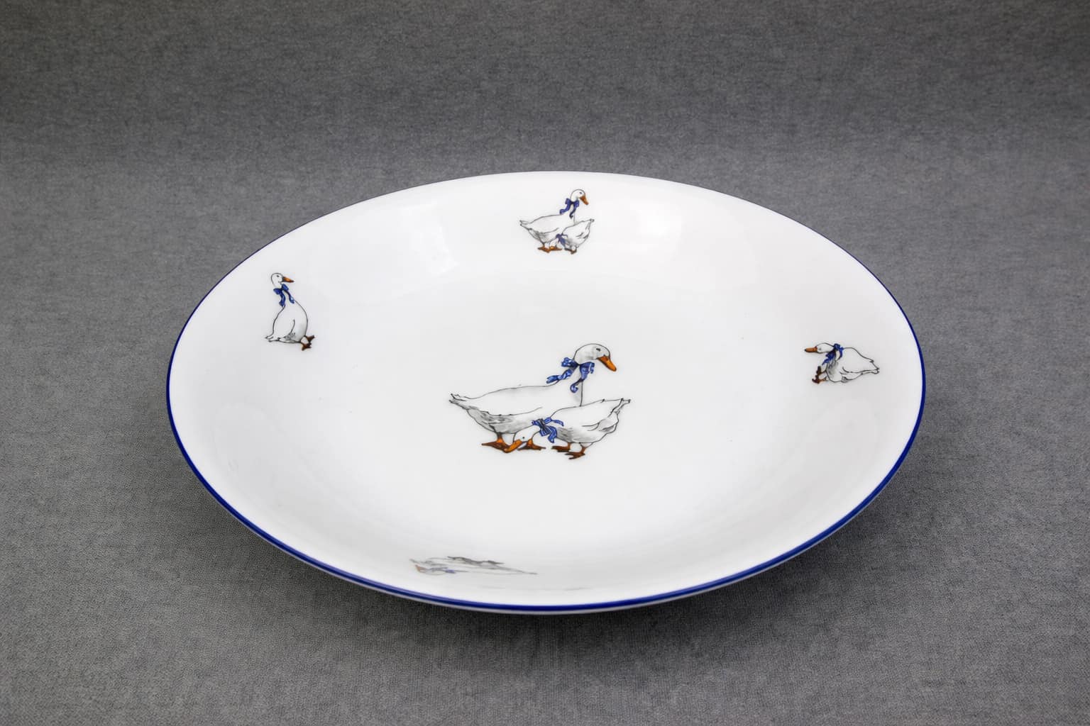 Набор глубоких тарелок Thun Saphyr "Гуси" диаметром 20 см — это удачное сочетание функциональности, узнаваемого дизайна и домашнего уюта. Белоснежный фарфор украшен забавными гусиками в синих бантах, которые сразу вызывают тёплые эмоции и создают атмосферу тишины, заботы и семейных трапез.