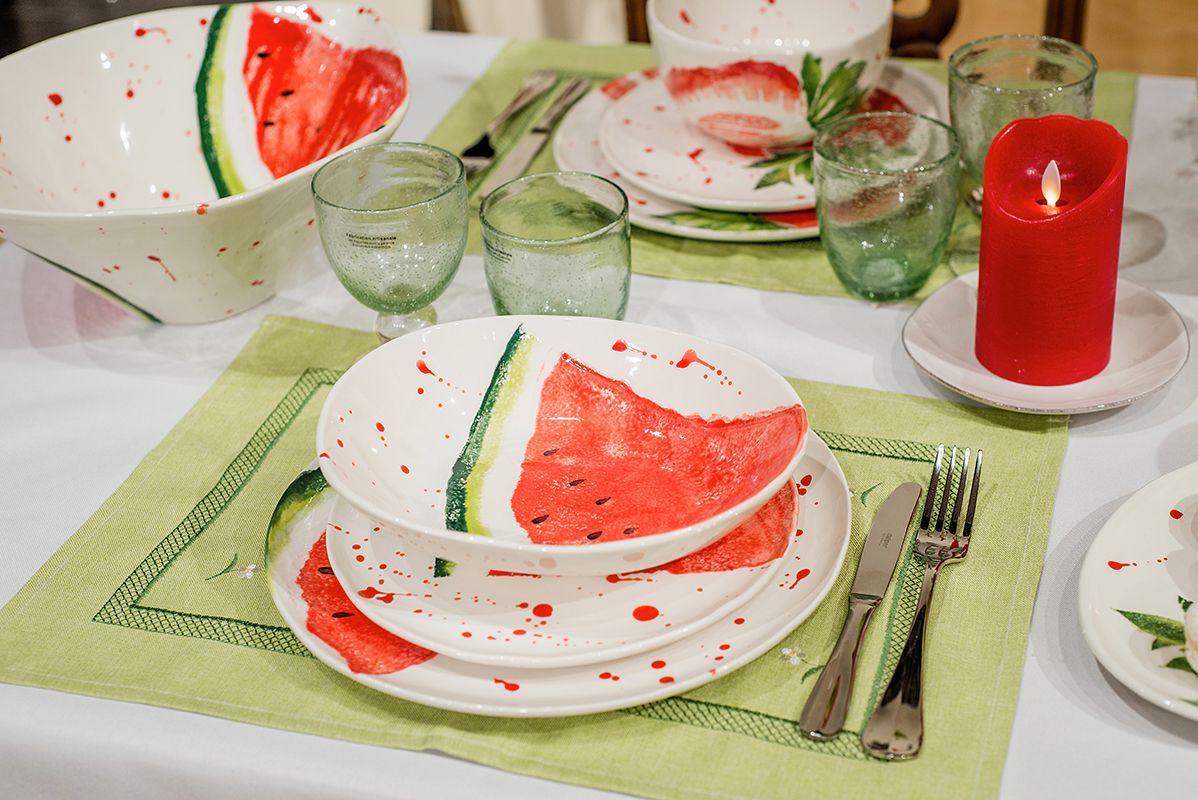 Керамическая суповая тарелка «Фруктовый коктейль» Villa Grazia — это сочетание яркого дизайна и практичности. На белоснежной поверхности изображена сочная долька арбуза с контрастной зелёной коркой и алыми каплями, будто созданными акварелью. Размер 24×20 см, высота 5 см — оптимальные параметры для порционной подачи супов, пасты или салатов. Качественная керамика устойчива к ежедневному использованию и сохраняет тепло блюда. Такая посуда добавит свежести и летнего настроения любой сервировке, делая трапезу особенно приятной.