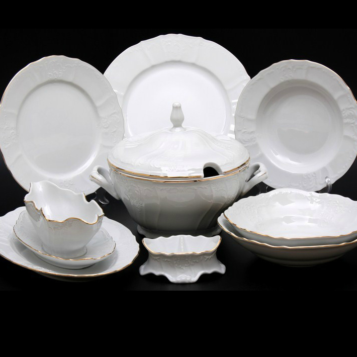 Коллекция Bernadotte — это олицетворение утончённой классики и благородства, которое никогда не выходит из моды. Белоснежный фарфор с деликатным рельефом и тонкой ручной позолотой на краях выглядит по-королевски изысканно. Эта посуда не просто украшает стол — она задаёт настроение вечеру, подчёркивает вкус хозяйки и создаёт ощущение настоящего праздника даже в обычный день. Каждый элемент коллекции — это не просто тарелка, а изысканный штрих к вашей сервировке.