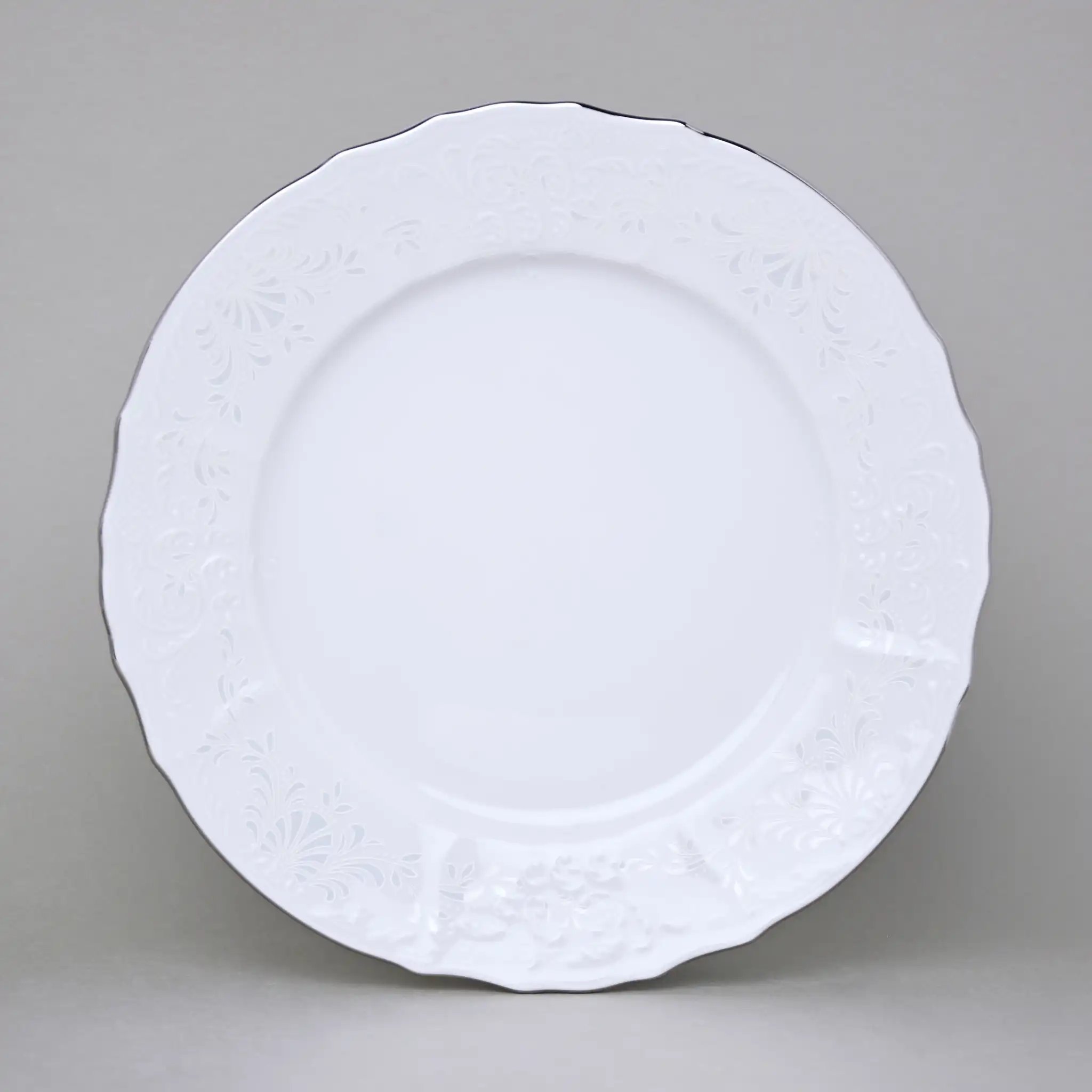 Набор тарелок обеденных фарфоровых белого цвета узорчатых с платиновым краем Bernadotte Thun Невеста 25 см/6 шт
