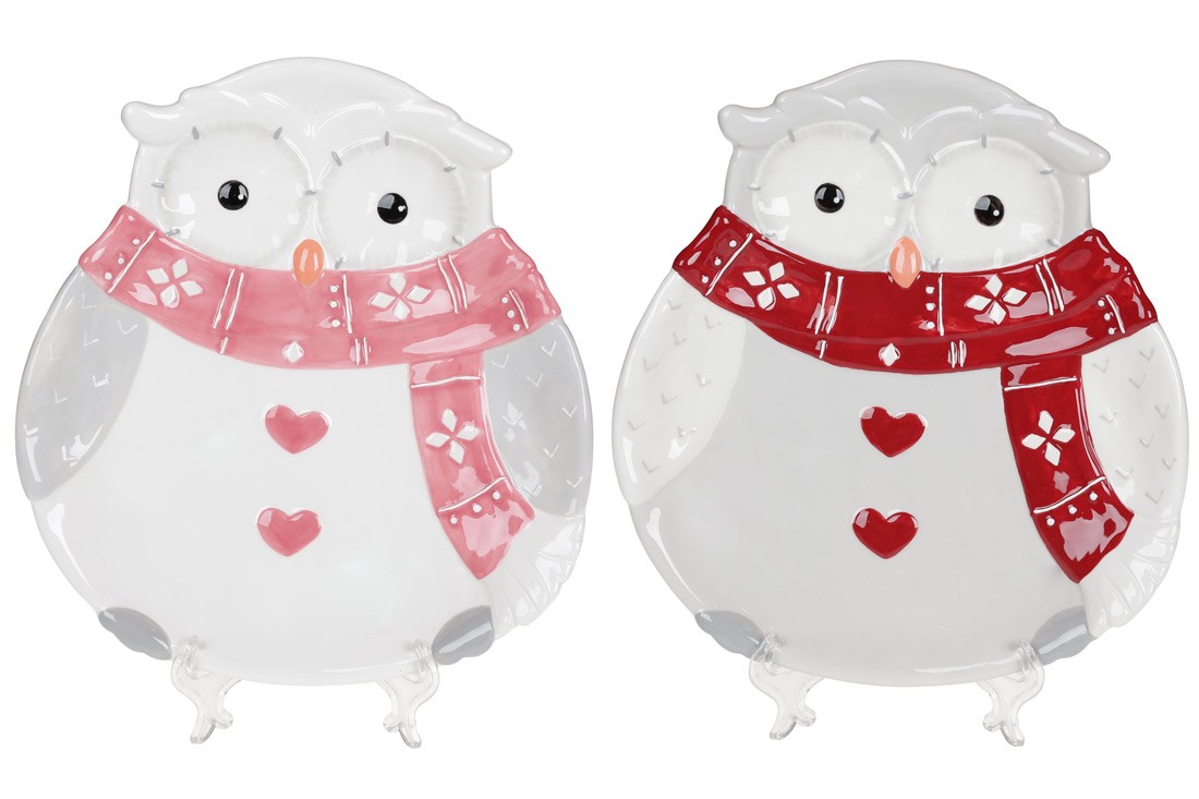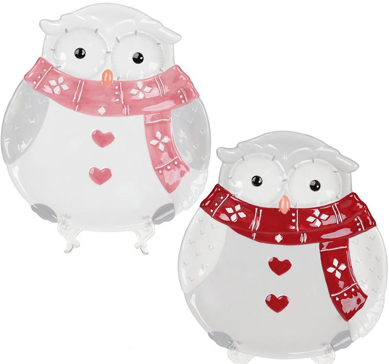 Страви з кераміки виконані в ніжних тонах із яскравою родзинкою – кольоровим шарфиком. У наборі 2 дизайни - совушка в червоному та рожевому шарфику.