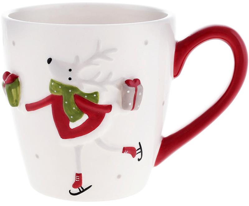 Набор высоких новогодних кружек белых Олени с подарком 470 мл/ 2 шт
