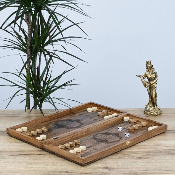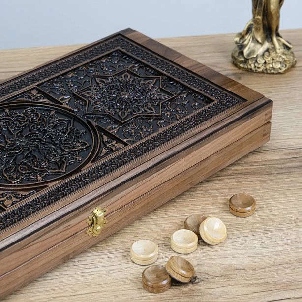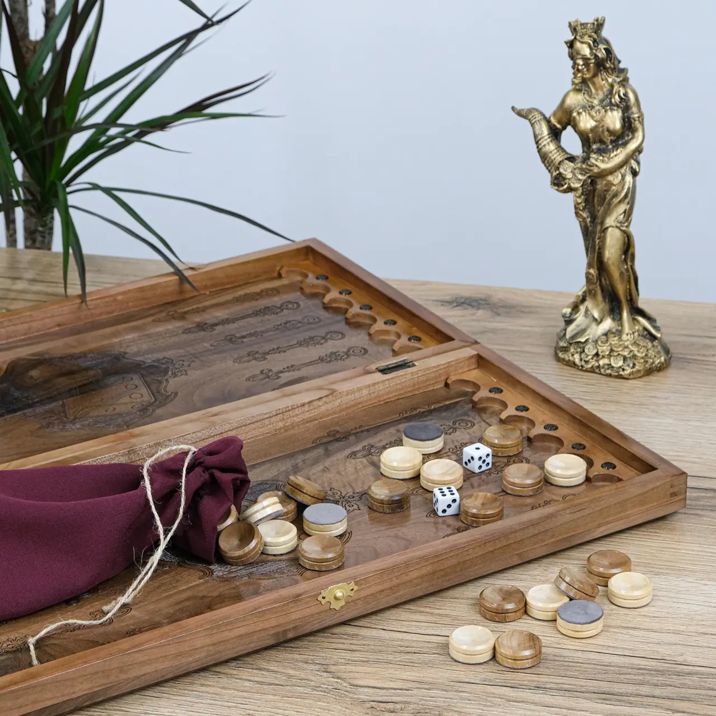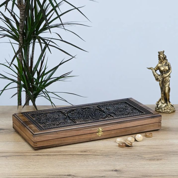 Завдяки якісним матеріалам і надійній фурнітурі нарди зберігають свій вигляд і функціональність протягом багатьох років, а різьблений дизайн дарує естетичне задоволення щодня.