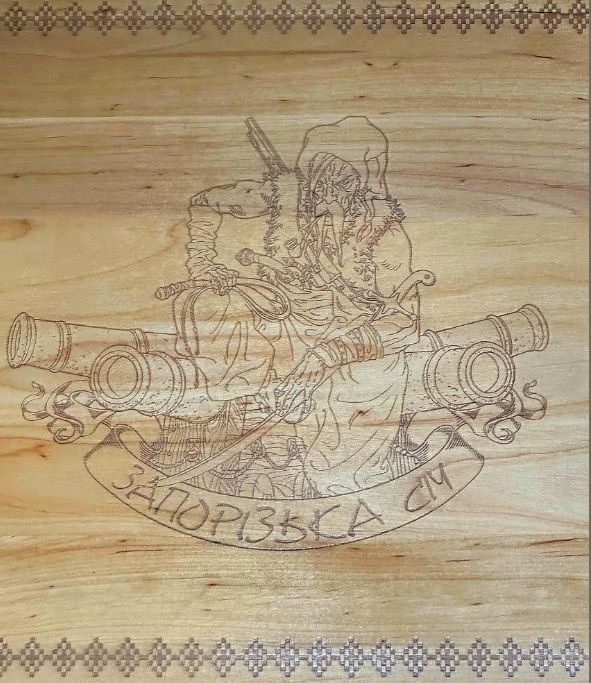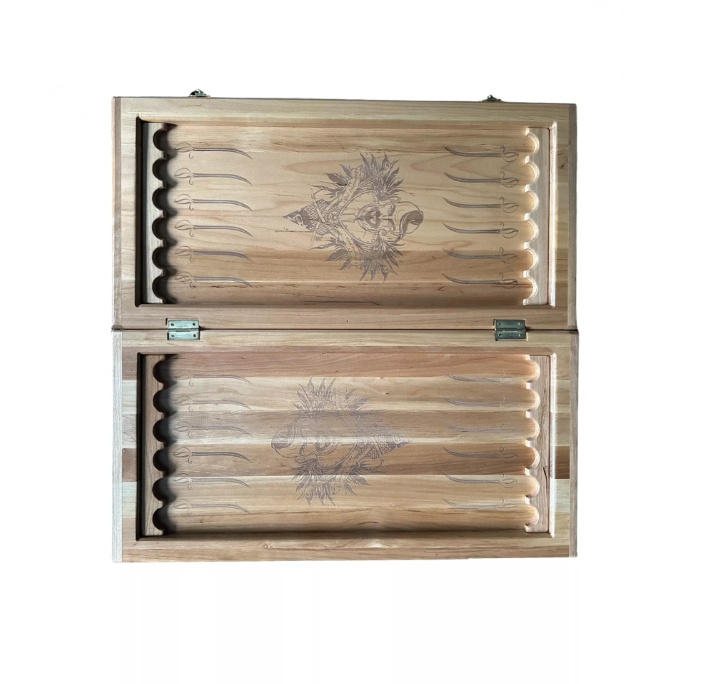 Нарды «Запорожская Сечь» в разложенном виде имеют размер 57 × 56 × 2,6 см и изготовлены из цельного массива дерева. В конструкции предусмотрены специальные углубления для размещения фишек. Декоративный рисунок нанесен методом лазерной гравировки.