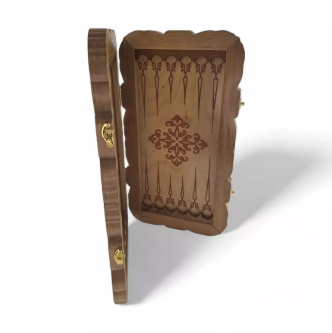 Каждая доска изготавливается вручную из отборной древесины и украшена тонкой резьбой и художественной росписью. Каждая деталь проработана с вниманием и заботой, благодаря чему нарды не только выглядят эффектно, но и дарят настоящее удовольствие во время игры.