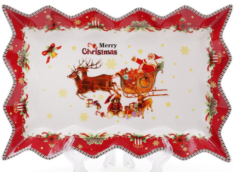 Новорічне блюдо прямокутне фарфорове "З різдвом" 25 см