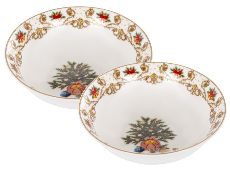 Новогодние фарфоровые салатники Елочные Огни 2 шт