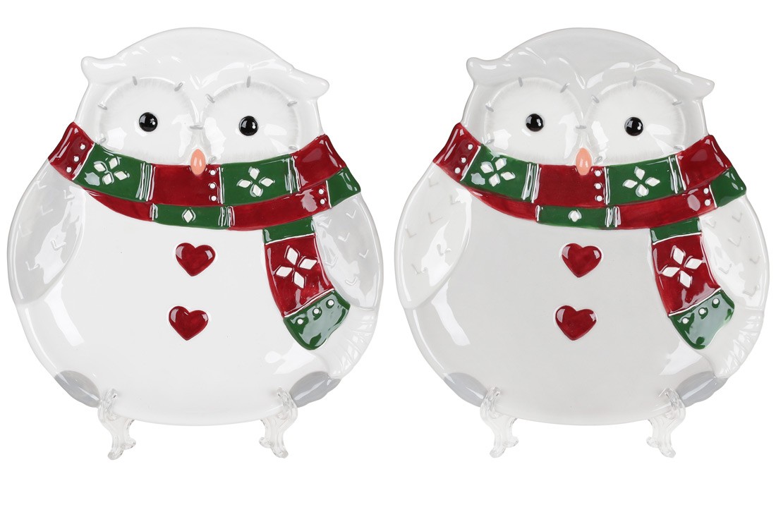 Тарелки из керамики выполнены в нежных тонах с яркой изюминкой - цветным шарфиком. В наборе 2 дизайна. Керамическая столовая посуда коллекции «Новогодняя сова» обладает высокой прочностью, глазурь устойчива к появлению царапин и трещин.