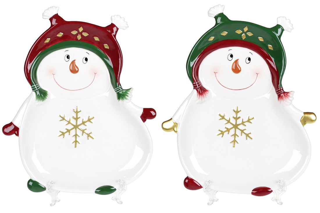 Новогодние тарелки сервировочные из керамики Снеговички 2 шт