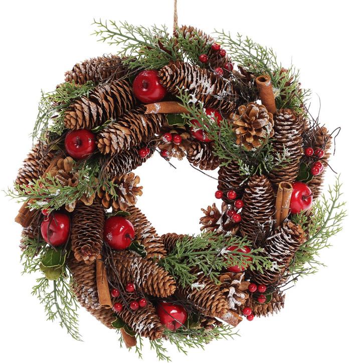 Натуральні ялинові шишки, штучна хвоя (поліетилен) та декор із ягід.