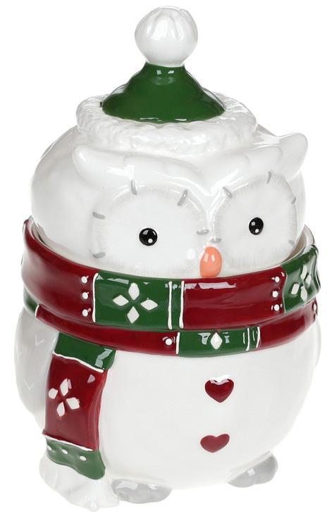 Рождественская банка для сыпучих керамическая "Новогодняя сова" 750 мл
