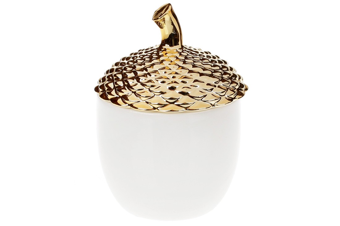 Новогодняя банка фарфоровая Золотой желудь 300 мл в оригинальном дизайне - выполнена в форме желудя с шляпкой-крышкой.