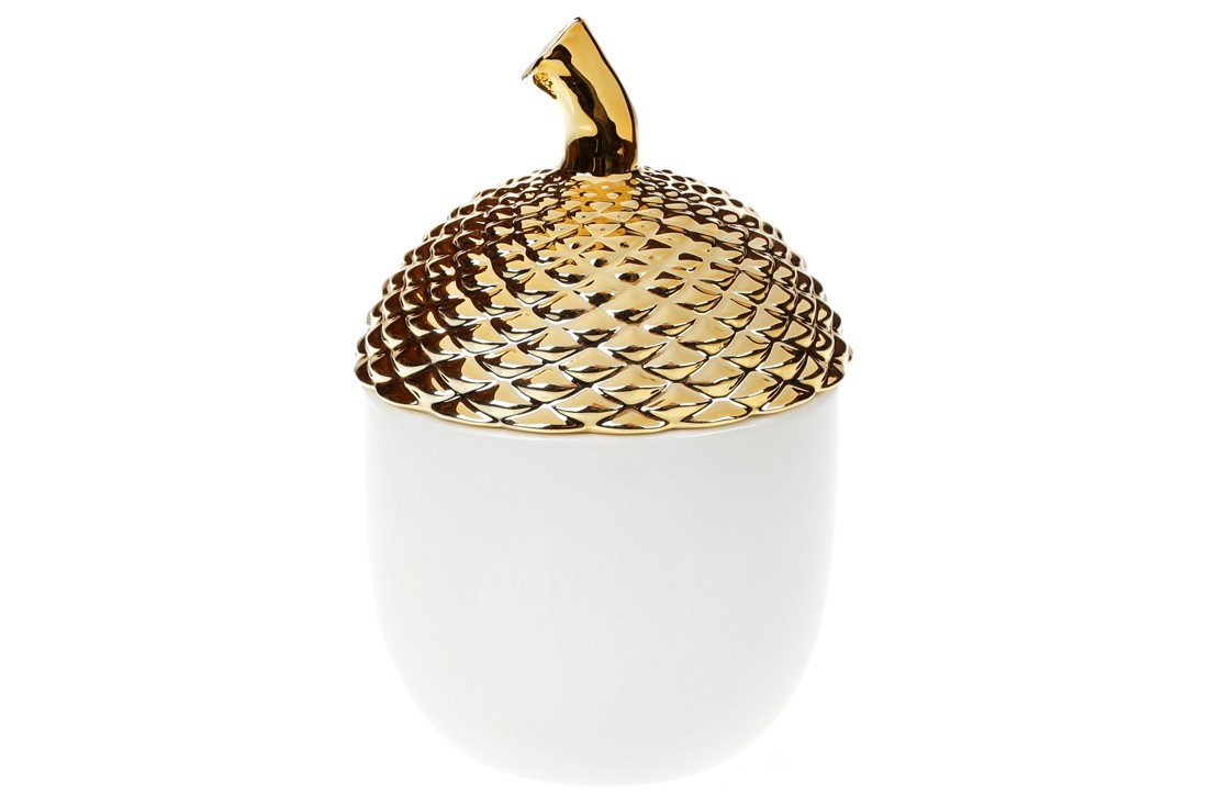 Новогодняя банка фарфоровая Золотой желудь 800мл в оригинальном дизайне - выполнена в форме желудя с шляпкой-крышкой.