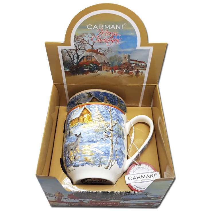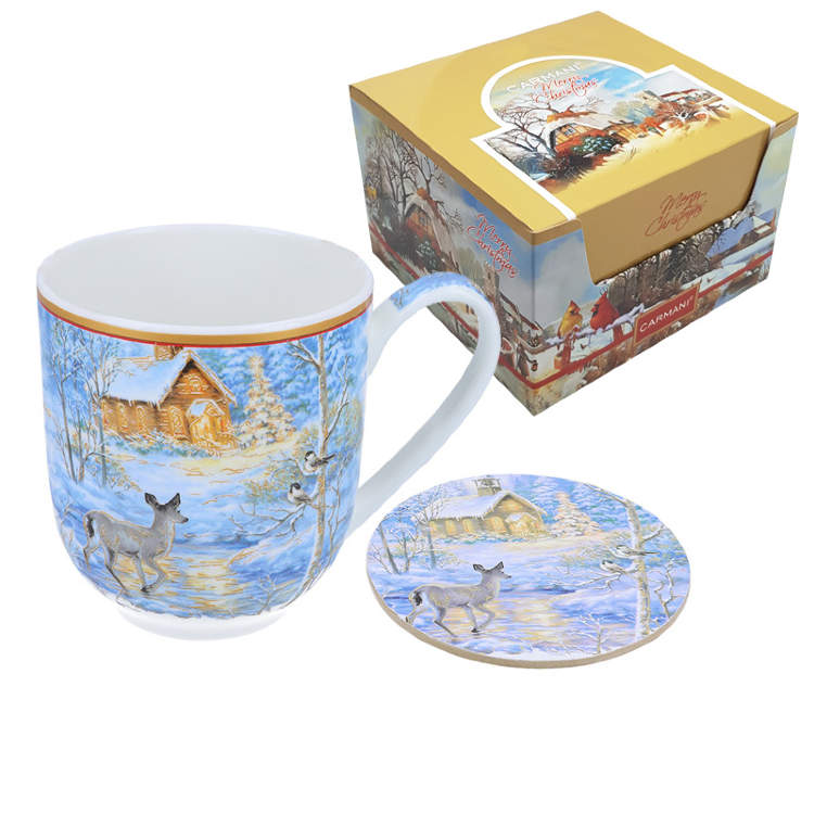 Новогодняя чашка подарочная фарфор Carmani Зима 600 мл