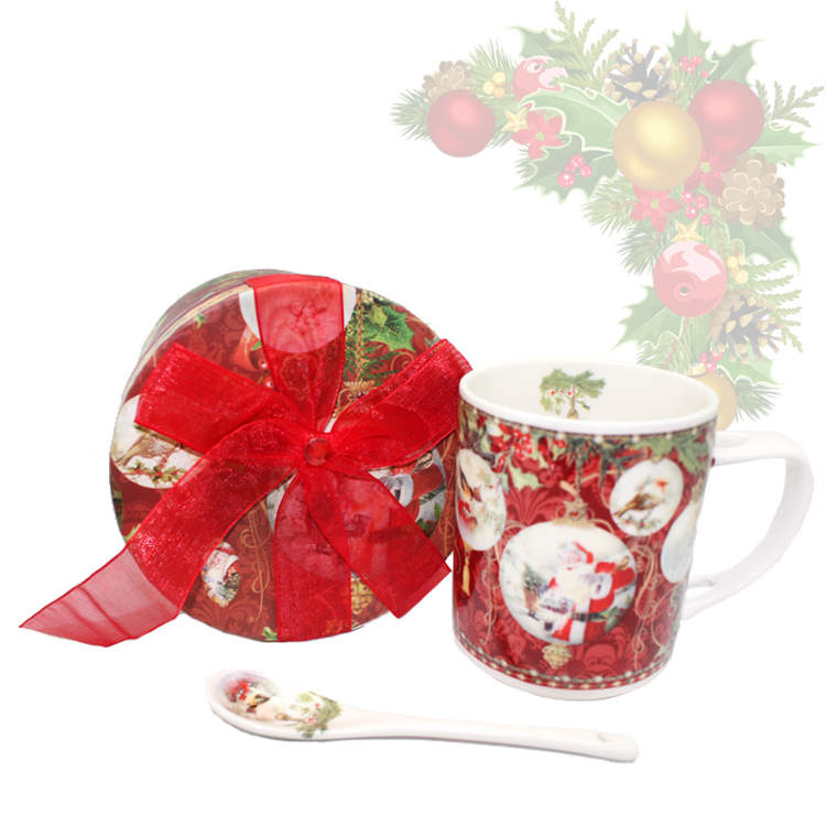 Новогодняя чашка с ложкой подарочная фарфор 350 мл